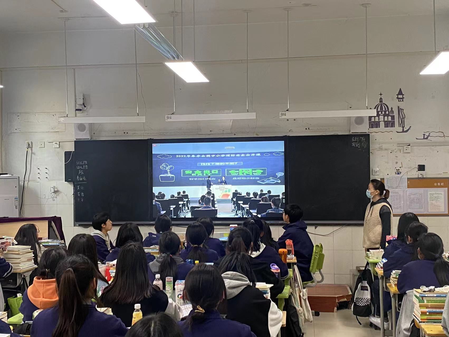 21级学前2班班主任岳静带领学生们观看消防安全讲座
