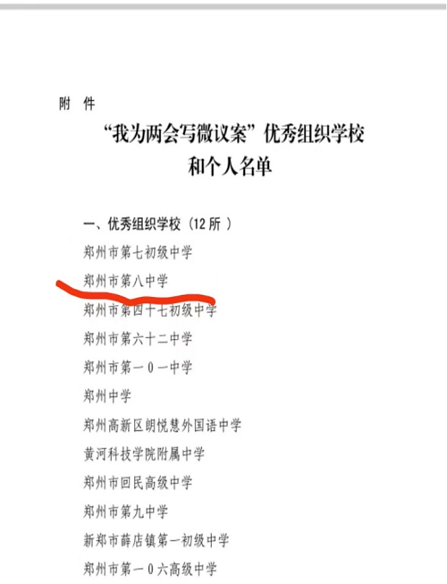郑州八中荣获“我为两会写微议案”优秀组织学校