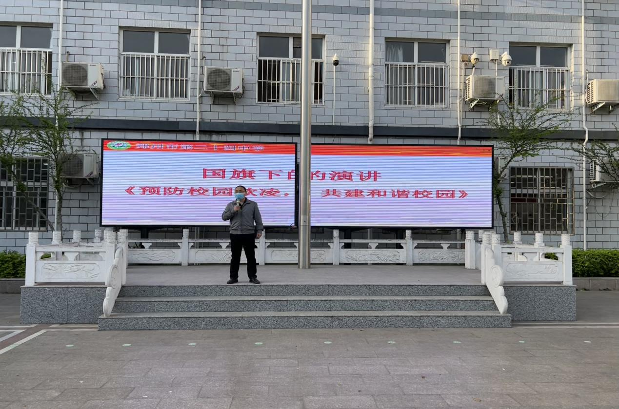 郑州24中以零容忍的态度,严防校园欺凌和暴力事件,加强学生管理。该校高度重视预防校园欺凌工作,按照《郑州市教育局办公室关于进一步做好中小学生欺凌防治工作的通知》文件精神,学校召开专题会议,研究部署专项治理行动方案,举行一系列“防范欺凌 杜绝暴力”主题教育活动。