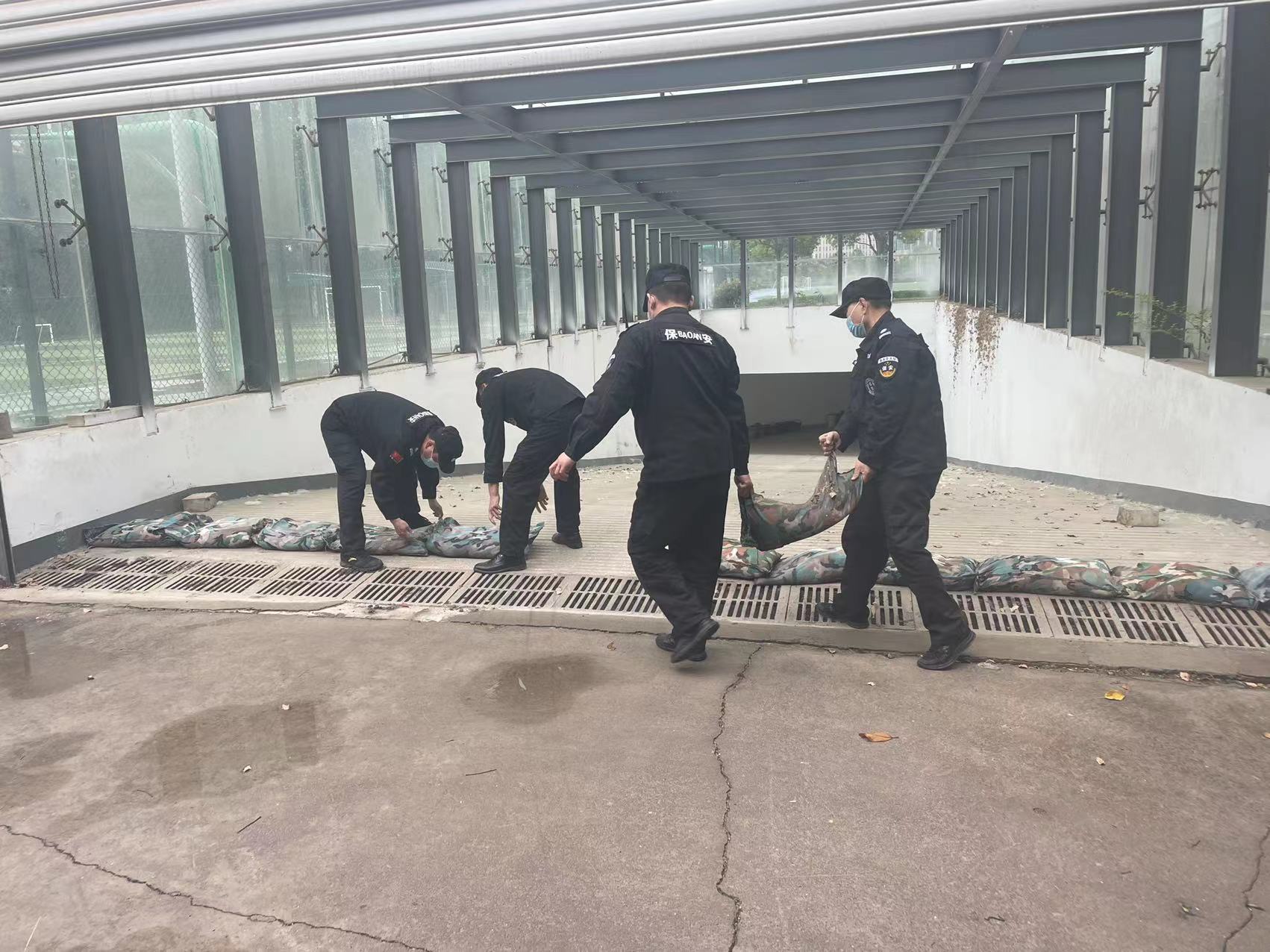 在防汛应急演练开始之前,总务处制定了详细周密的演练方案,杨帆老师组织召开了防汛救灾安全工作会议,严格组织演练活动的每一个细节,确保此次演练活动能够顺利完成。随着防汛应急演练现场总指挥陈渊主任一声令下,防汛应急演练正式开始。警报响起,防汛救灾应急队伍成员迅速达到指定位置,进行抢险救灾工作。第一组将沙袋依次摆放至地下车库出入口,防止雨水倒灌地下空间;第二组负责排水的成员迅速将抽水泵连上水带,放进窨井盖内,进行校园内雨水排放工作;第三组负责疏通墙体散水和地下管道,确保水流通畅。在三个小组的密切配合下,防汛应急工作快速、高效、有序地进行。