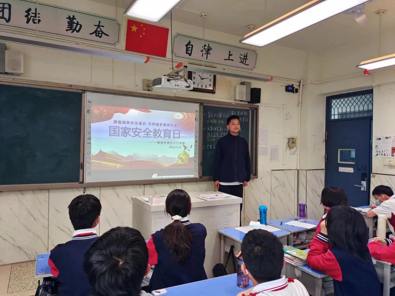 据悉,郑州57中通过开展主题升旗、主题实践、主题班会、主题团课等多种形式开展国家安全的教育,倡导学生积极宣传国家安全知识,警惕危害国家安全的行为,为保卫国家安全,维护社会稳定贡献青春力量。