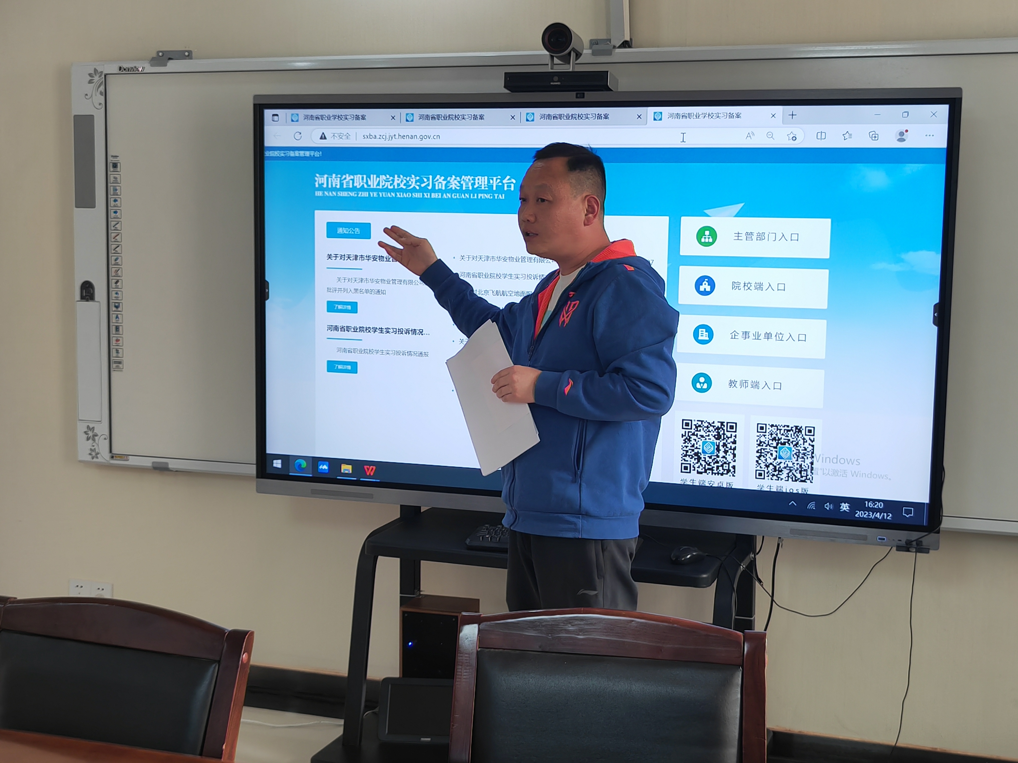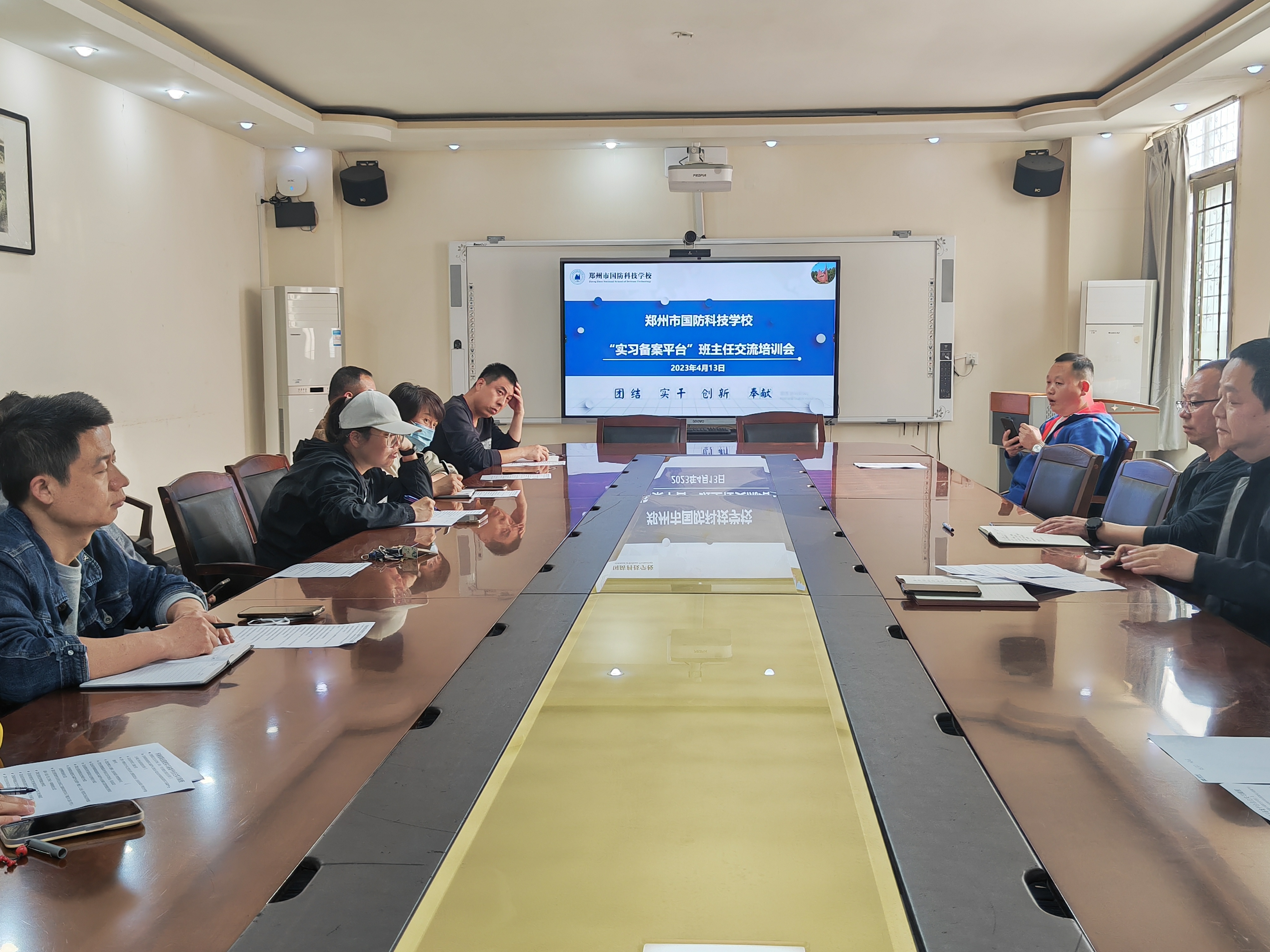 为更好的保障学生实习权益,加强学校、企业、家庭三方沟通与联系,为学生的成长和发展提供更好的支持,2023年4月13日上午,在郑州市国防科技学校接待室召开“河南省实习备案管理平台”班主任交流培训会,全体2020级班主任参加。