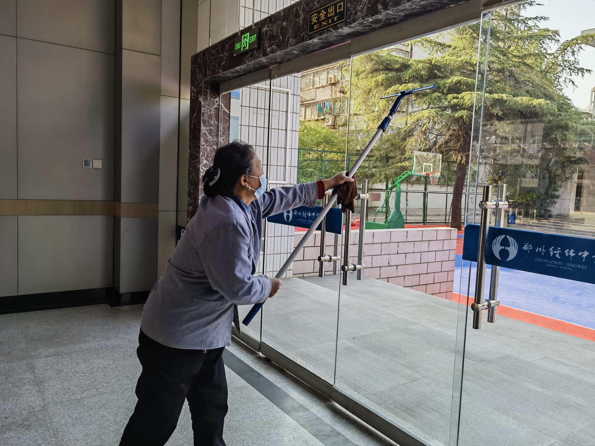 金水区经纬学校保洁师傅们开展“净化校园”的专项清理活动,以清洁校园环境卫生为主,预防性消毒为辅,全面清除校园内落叶、积水、污水、污物等,彻底清理卫生死角,做好灭鼠、清除蚊卵等工作。