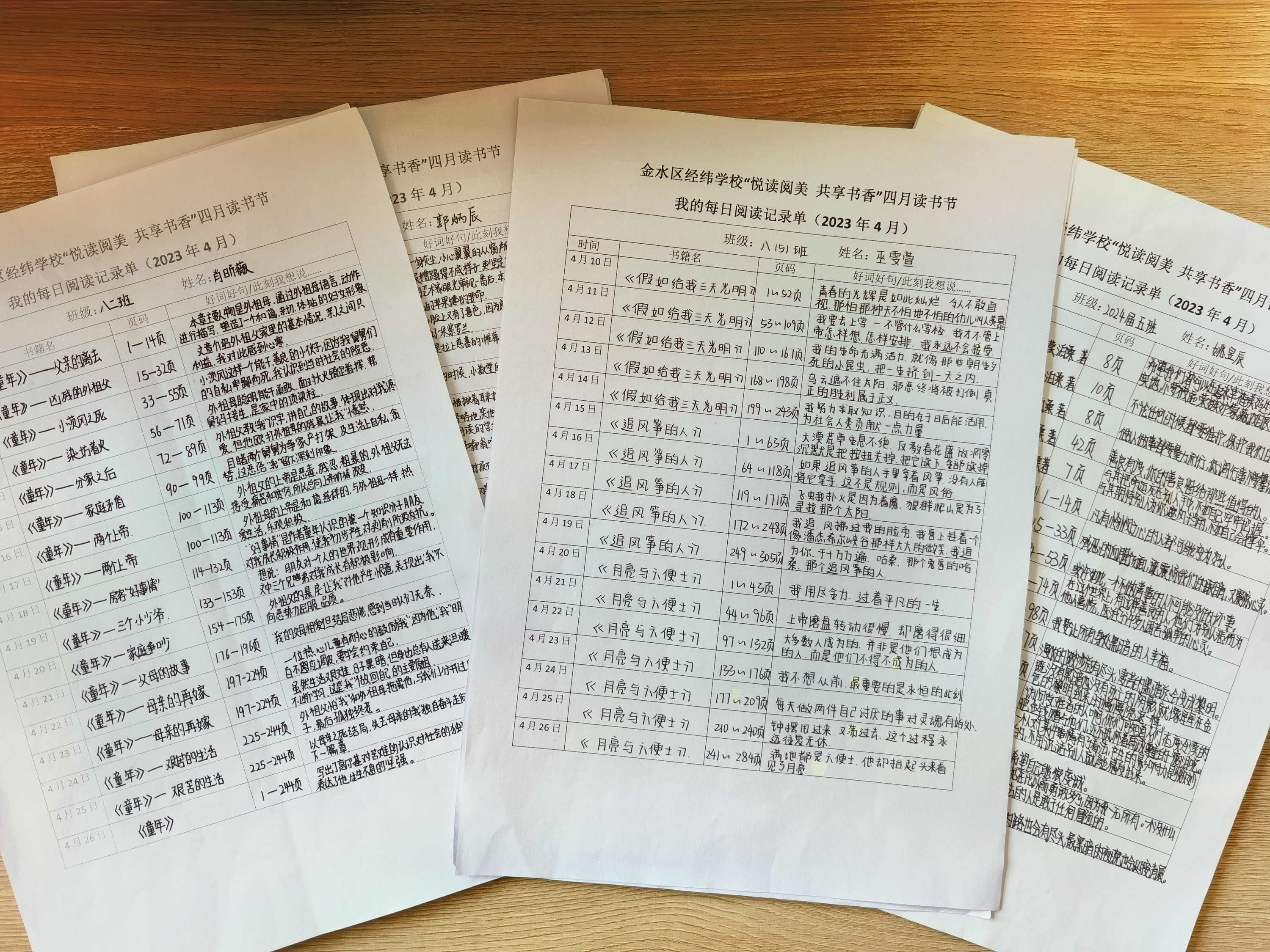 “读书达人”的每日阅读记录单