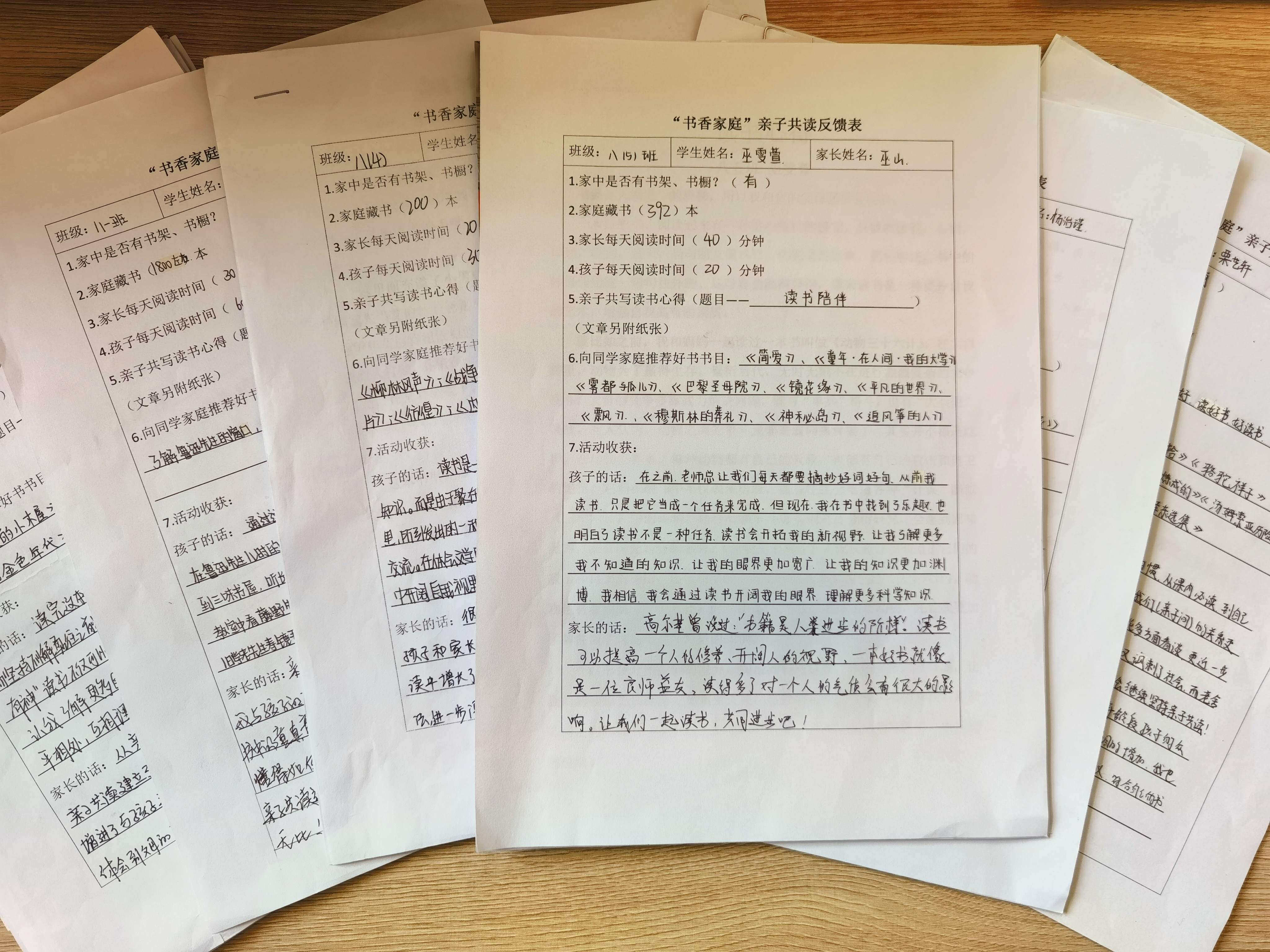 “书香家庭”亲子共读反馈表