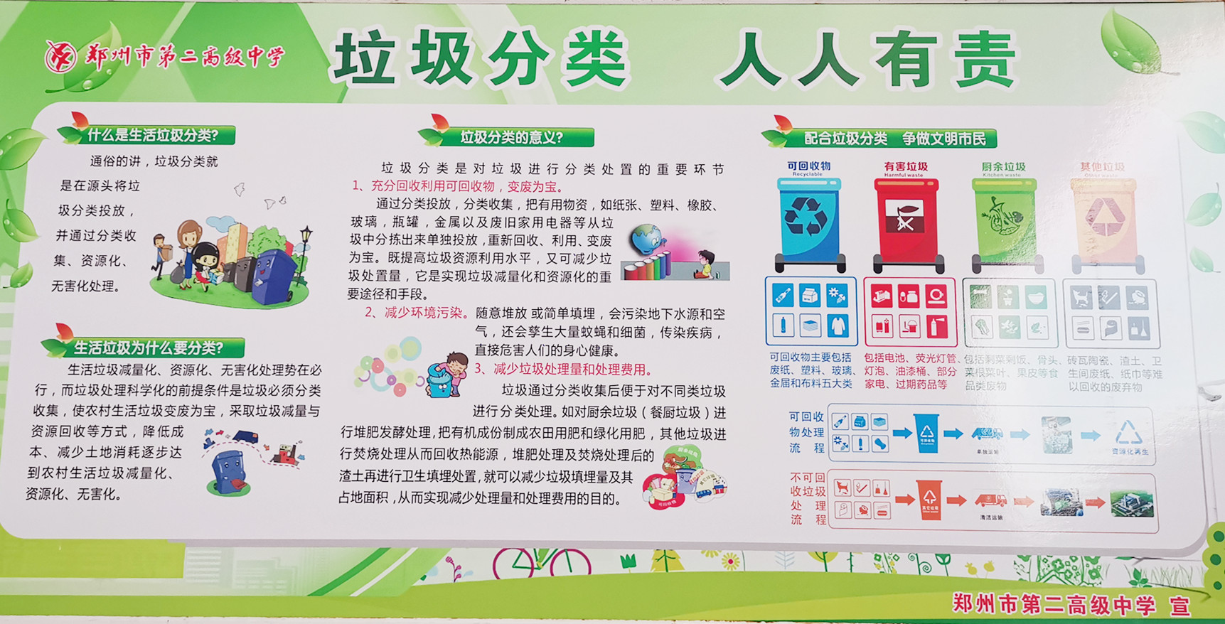 2023年4月是第35个爱国卫生月,郑州市第二高级中学集中开展以“宜居靓家园、健康新生活”为主题的爱国卫生月活动,促进师生践行文明健康绿色环保生活方式。