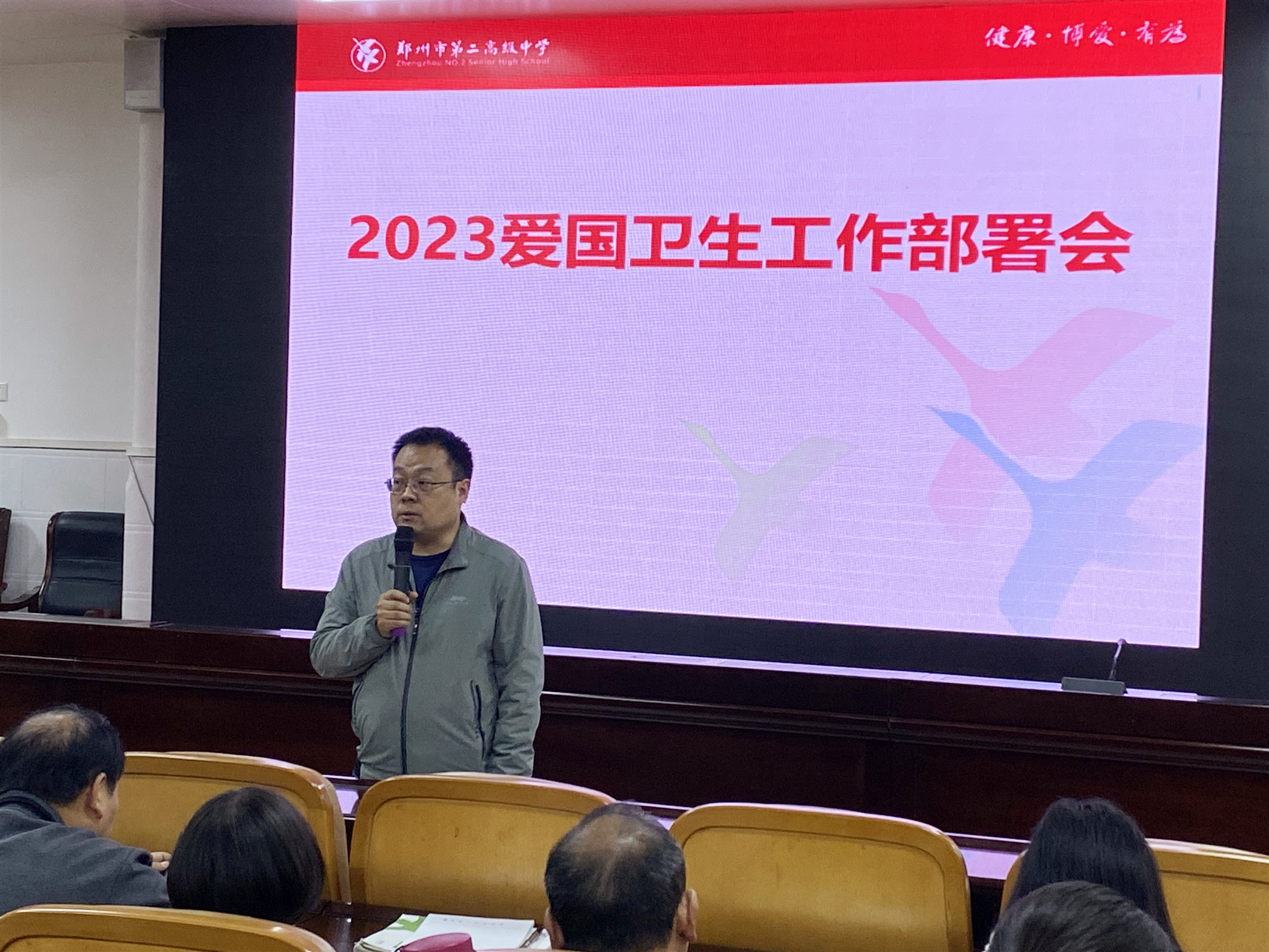 学生发展中心主任吴鹏起在班主任会议上布置爱国卫生月工作