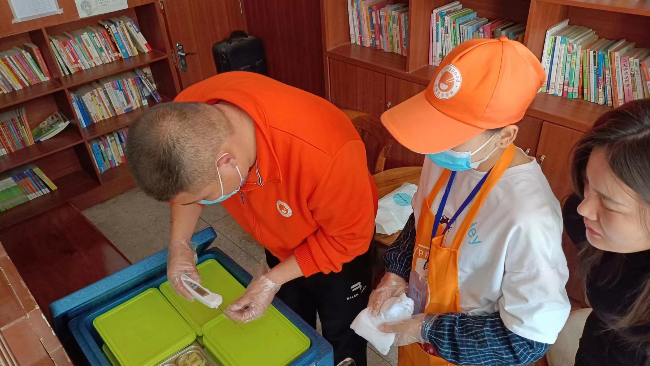 上午十点半,家长代表们按照约定时间准时来到学校。家长代表们首先查阅学校每周留存的过程性管控资料。然后餐企代表向家长展示食材供货商的相关资质,让家长了解食材原材料的采购方式及渠道,还介绍央厨的“明厨亮灶”和数字化管理工程,并向家长介绍如何通过下载官方“舌尖安全网”随时观看学生餐制作全过程。介绍完毕后,大家跟随郑州八中总务处老师崔师先来到分餐现场,一同参与到食品测温以及食品留样收餐环节。最后家长代表和学校值班领导老师一同陪餐。