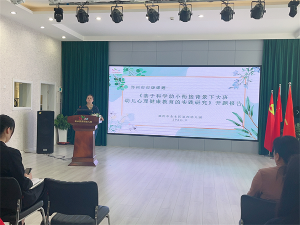 金水区第四幼儿园保教主任孟艳芳代表课题组作开题报告
