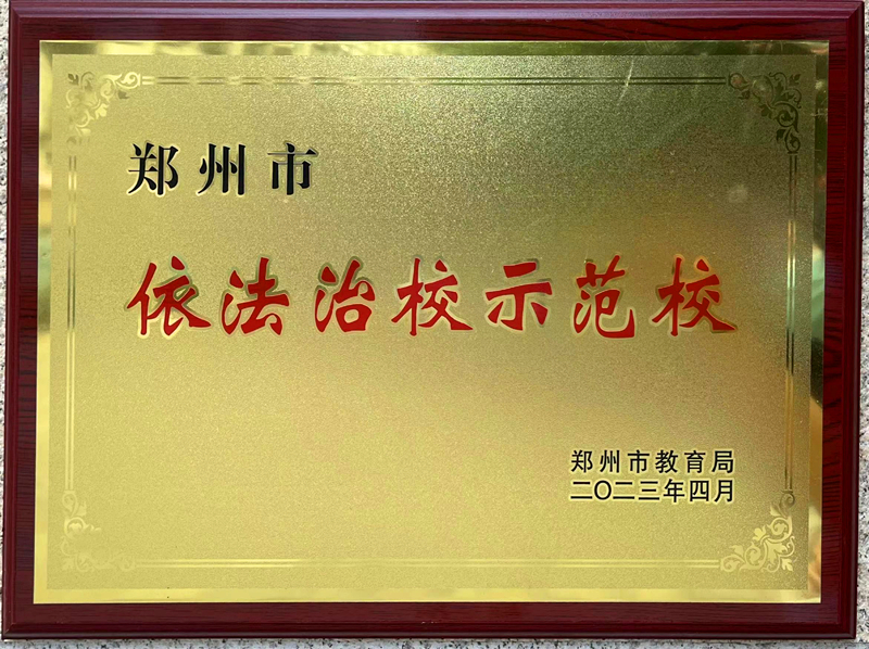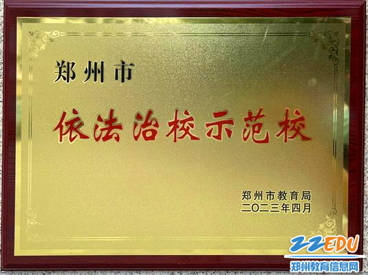荣获首批郑州市依法治校示范校称号