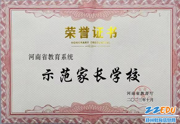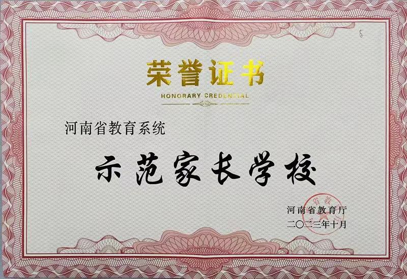郑州99中荣获河南省示范性家长学校称号