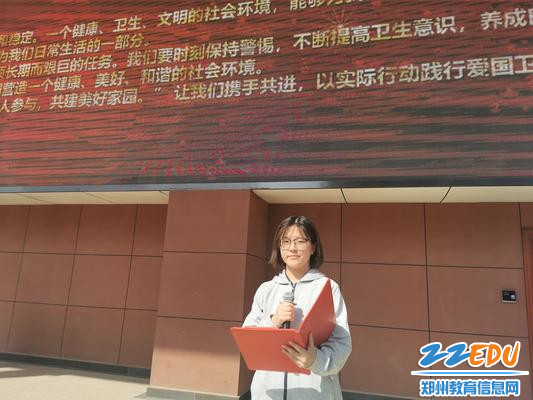 仪式最后,郑州八中政教主任甘铁权作总结性发言。他希望通过爱国卫生月活动的开展,全体郑州八中师生都要提升关注卫生、净化环境、珍爱生命的思想意识,从自身做起、从小事做起、从身边做起,提高自己的卫生健康水平,提高学校环境卫生整体水平,提高我们国家的环境卫生整体水平,使我们生活的家园卫生环境更美好,更健康、更舒适、更幸福!