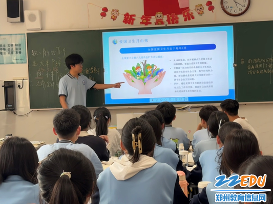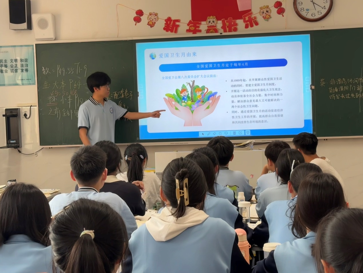 2024年4月是第36个全国爱国卫生月,为积极响应国家号召,提高同学们的卫生意识和健康素养,郑州市第一〇七高级中学于4月8日下午精心组织一场爱国卫生活动主题班会。此次班会旨在通过深入的学习和交流,让同学们深刻理解爱国卫生运动的意义,积极投身保护校园环境、注意个人卫生、防范传染病的行动中去。