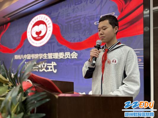 在此次仪式中,图管会七年级主席户羿博代表全体七年级会员发言,对2024届与2025届的前辈们表达由衷的感谢,并信心满满地表示,七年级会员将继承并发扬图管会的优良传统,为图管会的未来发展贡献力量。