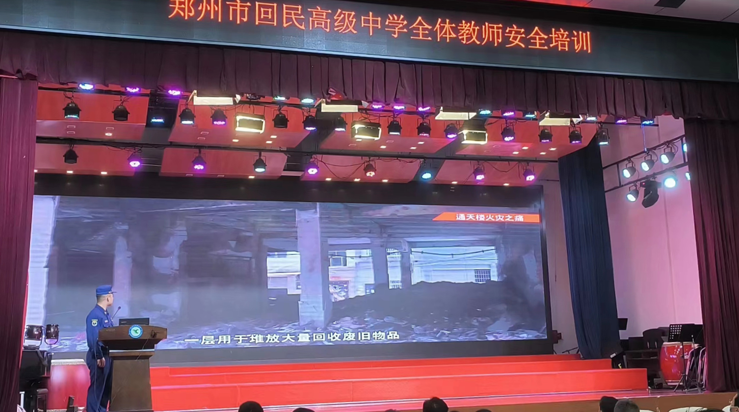 安全无小事,防患于未然。为提高师生的安全意识和自我保护能力,郑州市回民高级中学开展了消防、饮水安全、防欺凌等安全教育系列活动,旨在促进学校、家庭、社会之间的紧密合作,构建安全、和谐、美好的校园环境。4月11日下午,金水区消防救援大队的消防员走进校园,为全校教职工带来了一场既有理论讲解,又有实操演示的消防安全培训会。