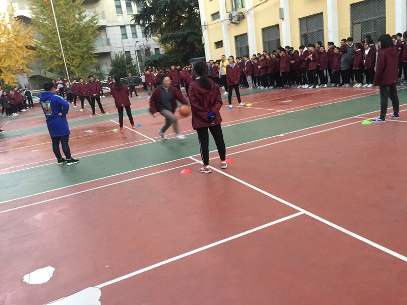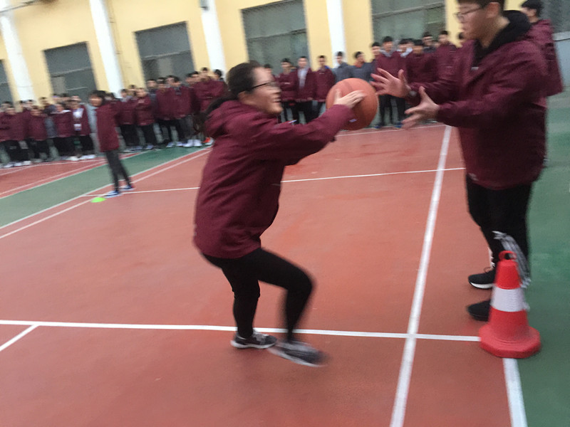 运球接力赛刺激、紧张,激情飞荡激烈的场面。10名选手分成两个小组,一人持球, 听到裁判开始的信号后,运球用绕“8”字的方法,通过5组障碍,把篮球交到对面同学手中。 10人,每次传递都是希望,同一个信念,同一个目标,沿着同一个跑道,向着终点飞奔,前进,向前冲!加油声、呐喊声一浪高过一浪……欢乐的笑声回荡在春日的校园。