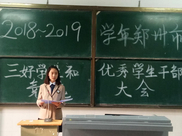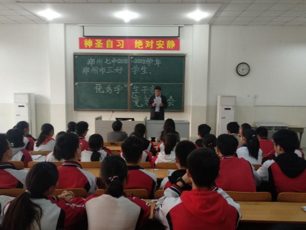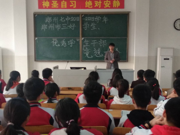 为全面推进素质教育,加强学校德育工作,根据郑州市教育局《关于评选2018-2019学年三好学生和优秀学生干部的通知》(郑教明电〔2019〕133号)和郑州七中《关于评选2018-2019学年度市级三好学生、优秀学生干部的通知》精神,3月28日下午,郑州七中高中部举行了“市级三好学生”和“市级优秀学生干部”的竞选工作。