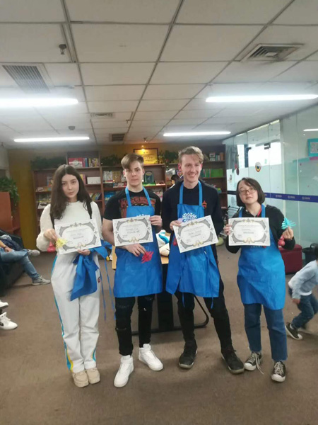 来自德国和新西兰的留学生们在制作过程中收获良多,他们是首次体验中国手工艺品的制作,欣赏着自己制作的成品,和在自己的国家见到的纪念品并无两样,颇有成就感。