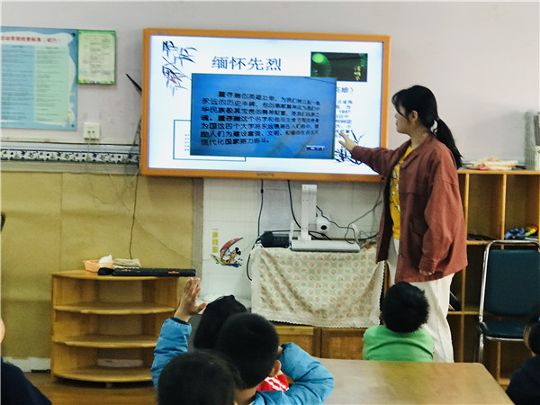 4月1日,为了让幼儿体会和感受中国的传统节日,同时缅怀革命先烈,开展爱国主义教育,金水区新建幼儿园大二班开展了以“弘扬民族精神,缅怀革命烈士”为主题的节日教育活动。