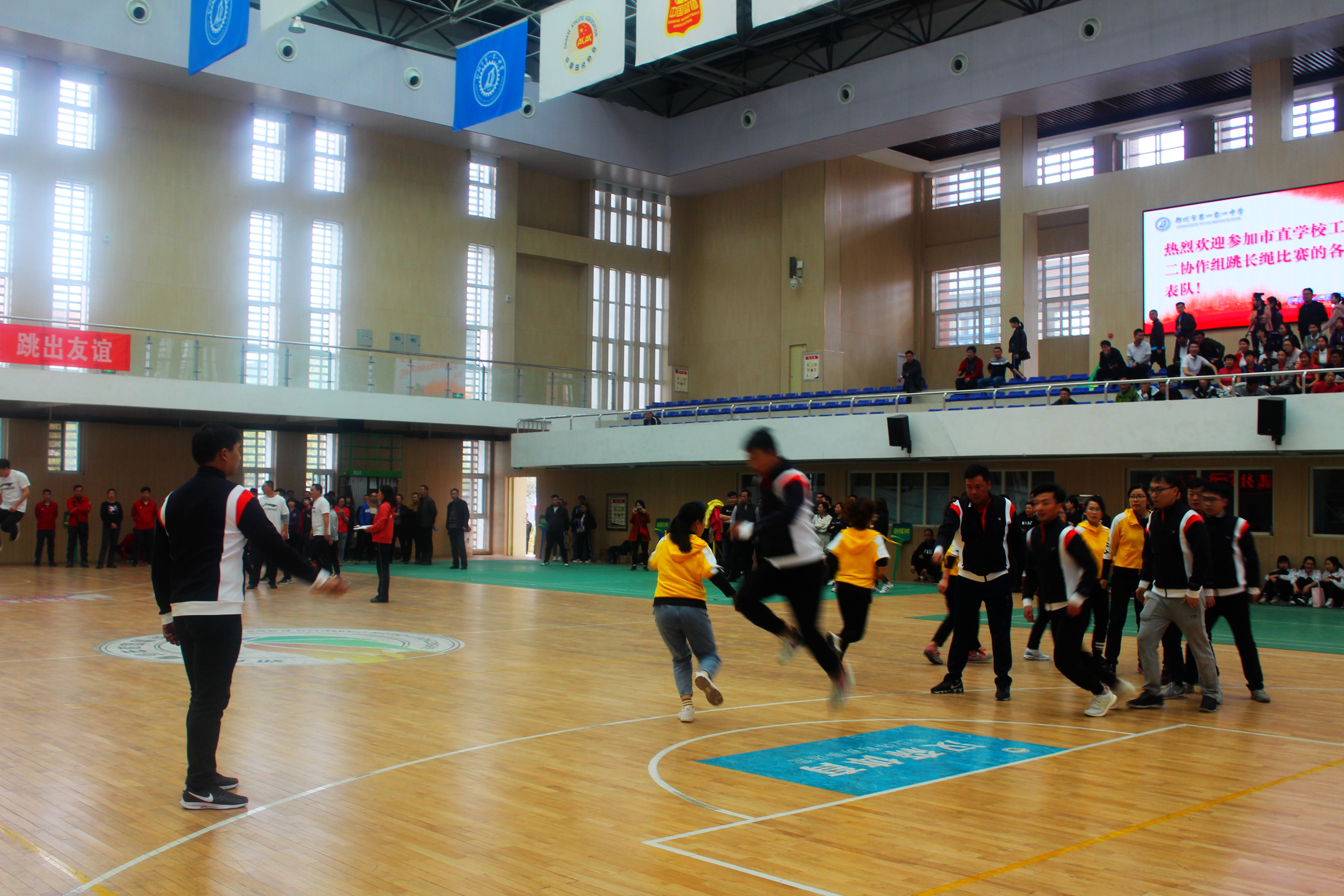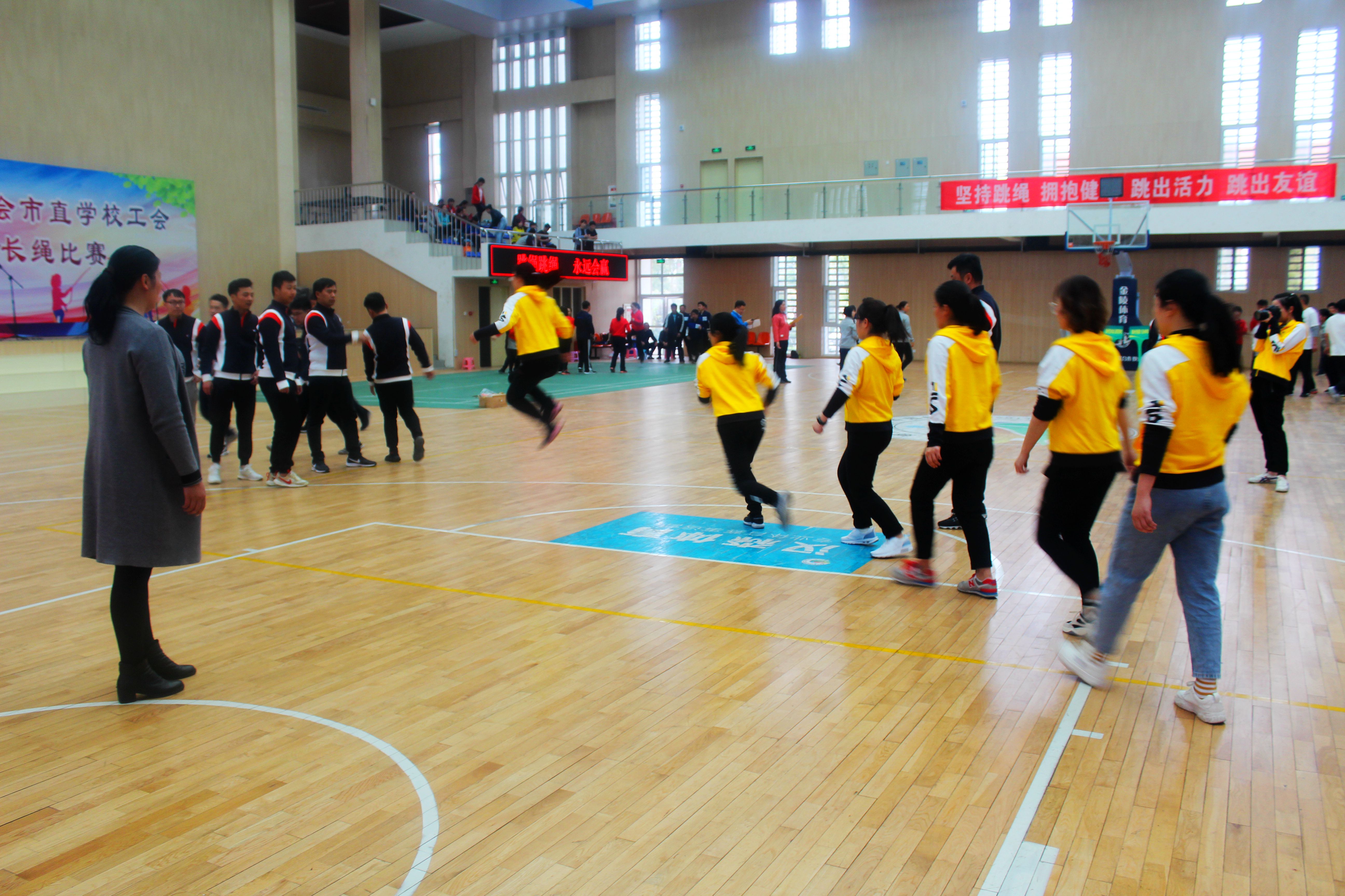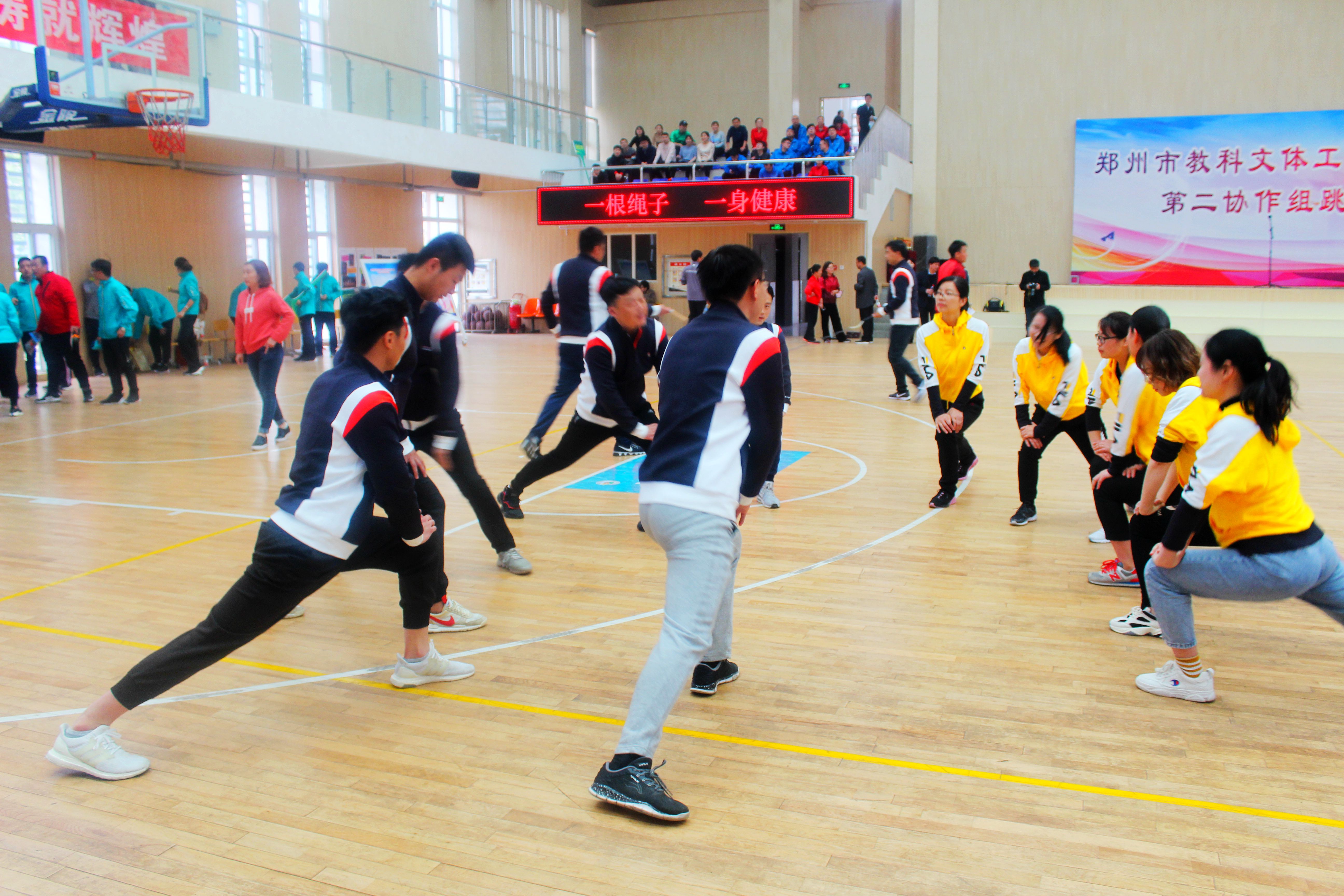 为了丰富教职工的文化生活,增进教职工的身心健康,培养团结协作的精神和协调能力,促进各校教职工之间的沟通交流,4月2日下午,郑州市教科文体工会组织市直学校工会第二协作组进行跳长绳比赛。