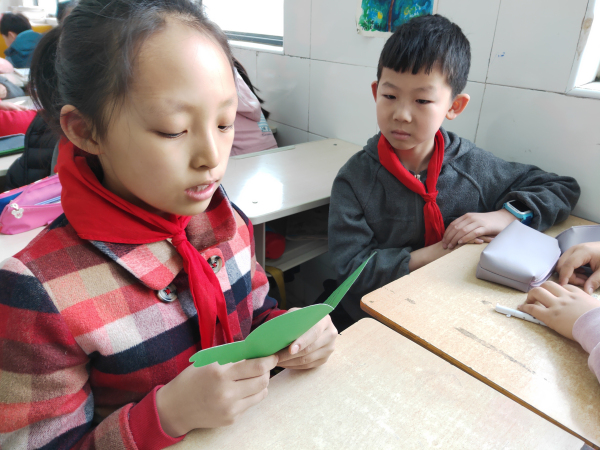 同学们相互分享自己制作的心意卡,说说自己对先烈、先贤、先人的感恩和敬仰