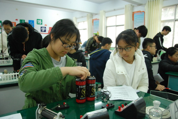 之前,该校高度重视实验操作能力的训练。专门成立了实验工作小组,明确分工,责任到人。他们精心准备、加班加点,指导同学们反复练习、不断总结。对实验困难学生分包到人,逐个过关。通过一段时间的严格训练,绝大部分学生能够正确、熟练进行试验操作,本次模拟考试满分率在百分之九十以上。