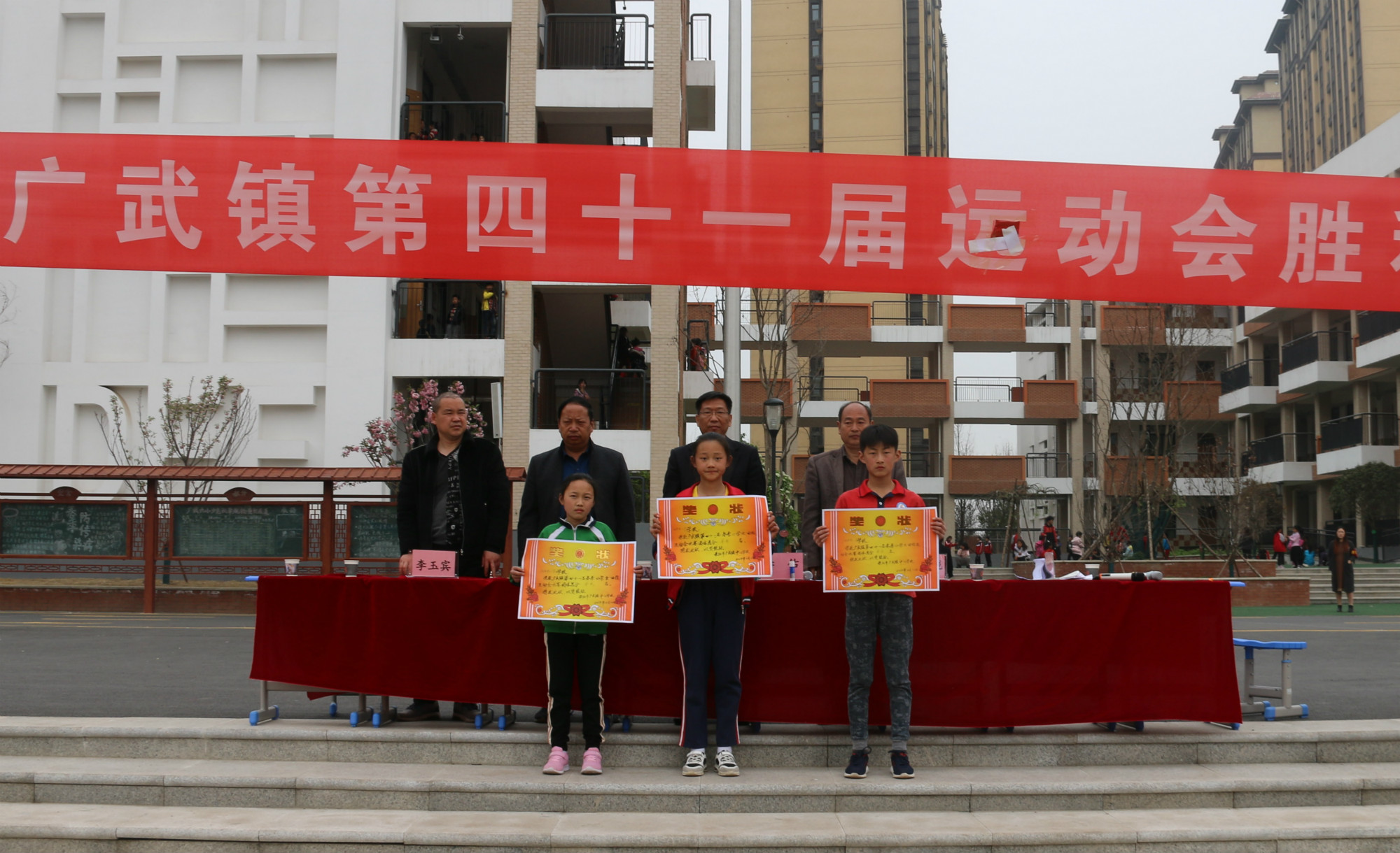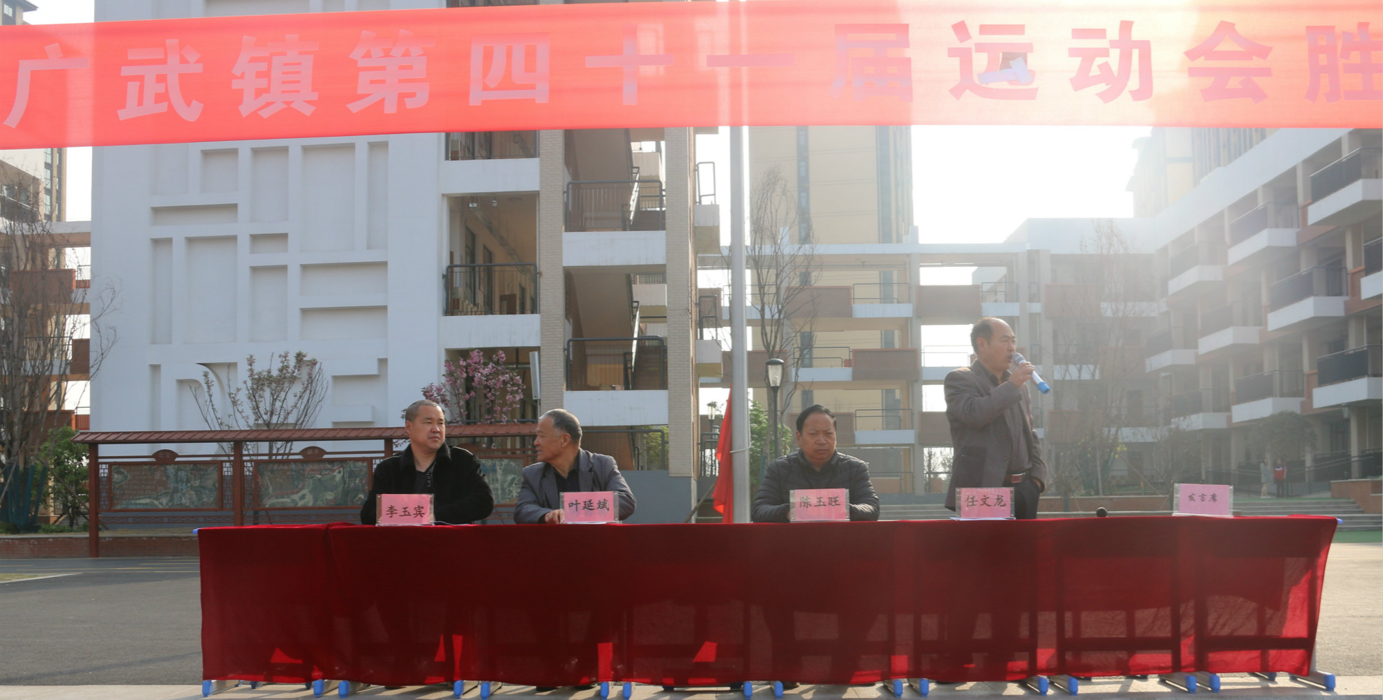 中心校领导宣布运动会开始