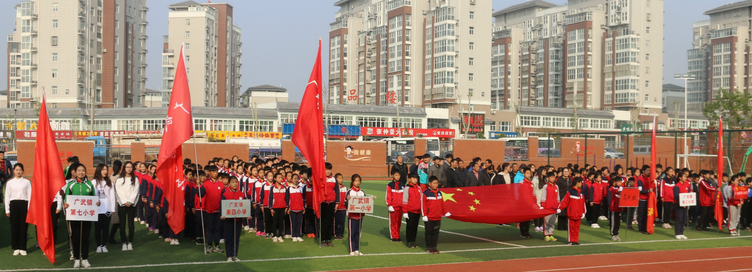 荥阳市广武镇第七小学的运动员正在等候入场