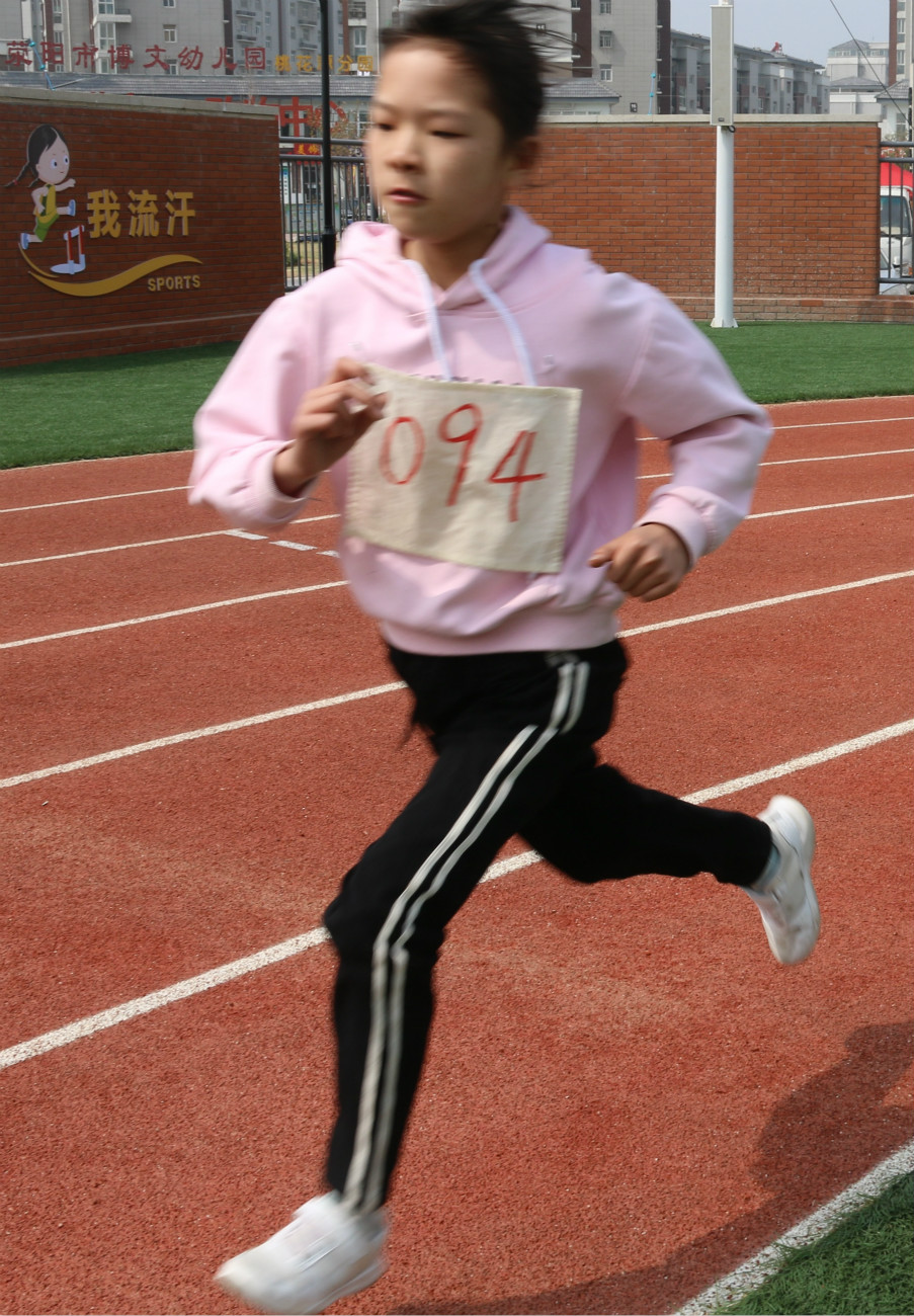 94号我校运动员李宜璠很有耐力,跑完上午女子1500米径赛、下午3000米径赛