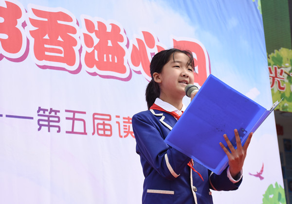 蹉跎莫遗韶光老,人生惟有读书好,乘着梦想的翅膀,在和煦的春风里,园丁们将《与春天相约》送与不老的青春与美好的韶华。问渠那得清如许?为有源头活水来,书籍是任何一种知识的基础,是任何一门学科的基础的基础,书籍是培育我们的良师,无需鞭笞和根打,不用言语和训斥,不收学费,也不拘形式,对图书倾注的爱,就是对才智的爱。在读书节上,副校长王艳艳公布了《书院河路小学第五届读书节方案》,依据方案学校将会开展一系列的读书活动。如:书签制作diy、读书记录卡设计制作、图书封面创意设计等静态展示,同时还将进行“我为好书代言”“畅游成语王国”“诗词吟诵”等动态活动。在读书成果汇报阶段,学校将对各环节中展现出来的优秀成果进行统一表彰,届时将评选出优秀创意设计奖、独特表现奖等奖项并评选出读书之星、书香班级、书香家庭等优秀集体与个人。最后,学生代表李明哲同学向全体师生发出读书节倡议。全体师生在读书节上以铿锵有力的声音表达了立身以立学为先,立学以读书为本的誓愿。