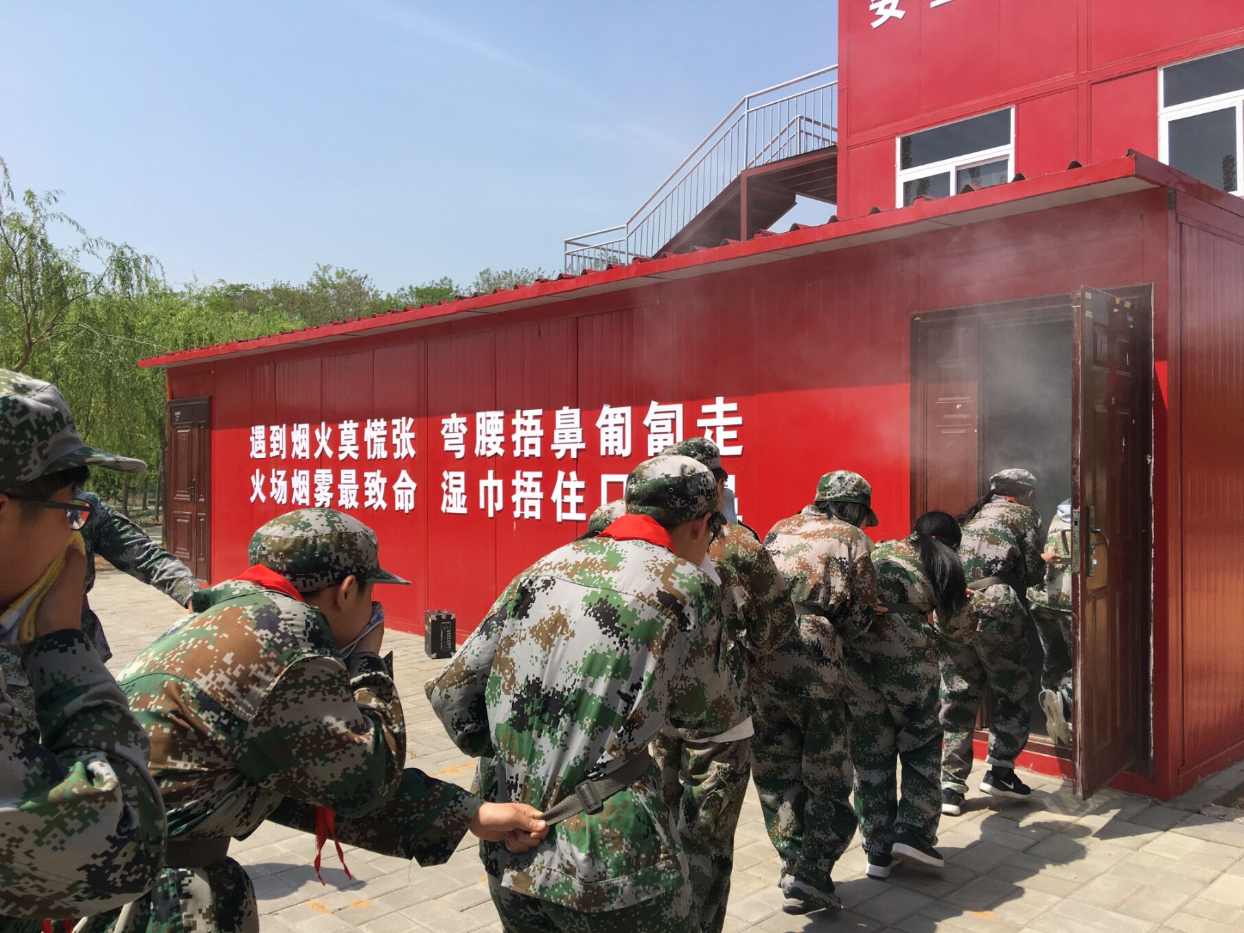 每个班级依次进入模拟火灾现场进行逃生。在各位教官的指导下,学生们捂住口鼻,手拉手通过考验,让学生们有了一次真实的火灾逃生体验。