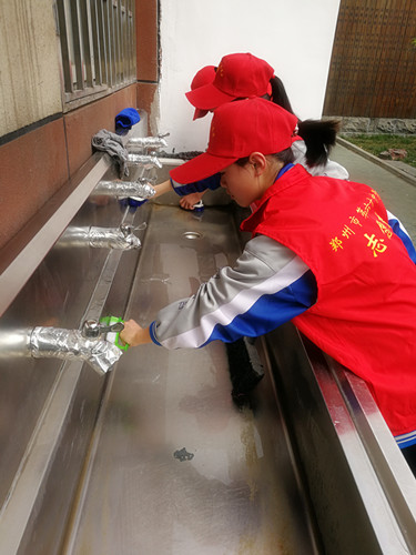 接着,在4月16日中午,郑州60中志愿者服务小分队开始行动,志愿者们迎着春日温暖的阳光,开始在校园里寻找水源,同学们手持洁具自由结合,向着水源出发。此次青年志愿者们任务是检查水龙头滴水情况、保障水设施的干净整洁、粘贴宣传海报,志愿者们干得热火朝天,将校园内的水龙头和水设施认认真真的检查一遍,珍惜水资源就是珍惜生命。