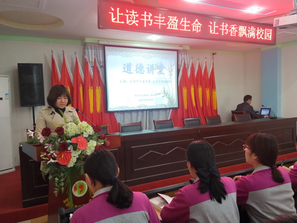 人间四月天,书香溢满园,为进一步提高教师自身的文化素养,打造书香校园,充实校园内涵文化,成为阅读的践行者和受益者。4月19日下午,登封市市直一幼在学校四楼会议室举办了第二期道德讲堂,主题是:“让读书丰盈生命 让书香飘满校园”。道德讲堂共有八个环节,分别是“唱歌曲、诵经典、学模范、颂诗歌、自省、发善心、送吉祥、一堂一善事”。