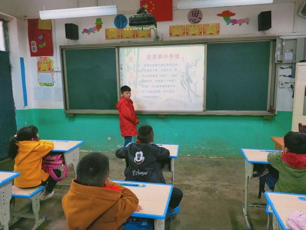 上午,校长陈艳芳利用国旗下讲话向全校师生发出倡议,倡导各班根据本班实际制定阅读计划,完善班级文化建设,让班级充满浓郁书香,六中队少先队员程一楠做了国旗下演讲,阐述了阅读对于小学生的重要性。