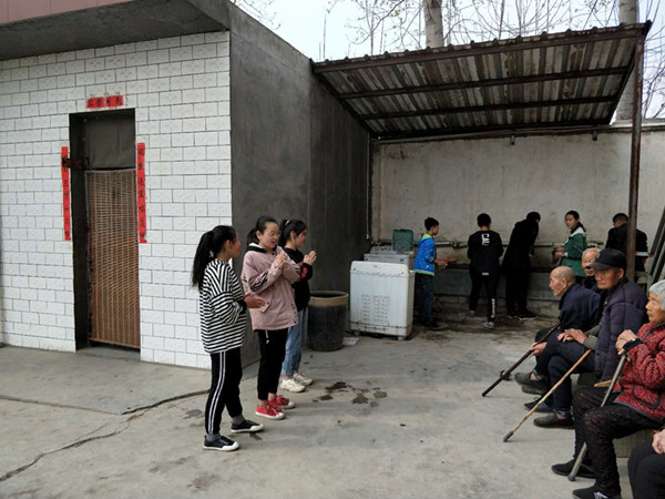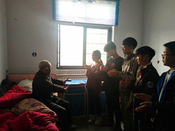 孩子们三五个一组,在小组长的带领下,为老人们擦桌子,扫地,摆放物品。卫生打扫完毕,孩子们为敬老院的爷爷奶奶们献上了精心准备的表演,唱歌、跳舞,整个敬老院散发出充满活力的气息。老人们也被孩子们的热情感染,开始带领孩子们学唱红歌,讲述抗战故事、猜脑筋急转弯,刚开始略显拘谨的孩子们慢慢和老人们熟络起来,笑容浮现在每个人的脸上。和老人们约定下次的活动时间之后,孩子们依依不舍地离开了敬老院。