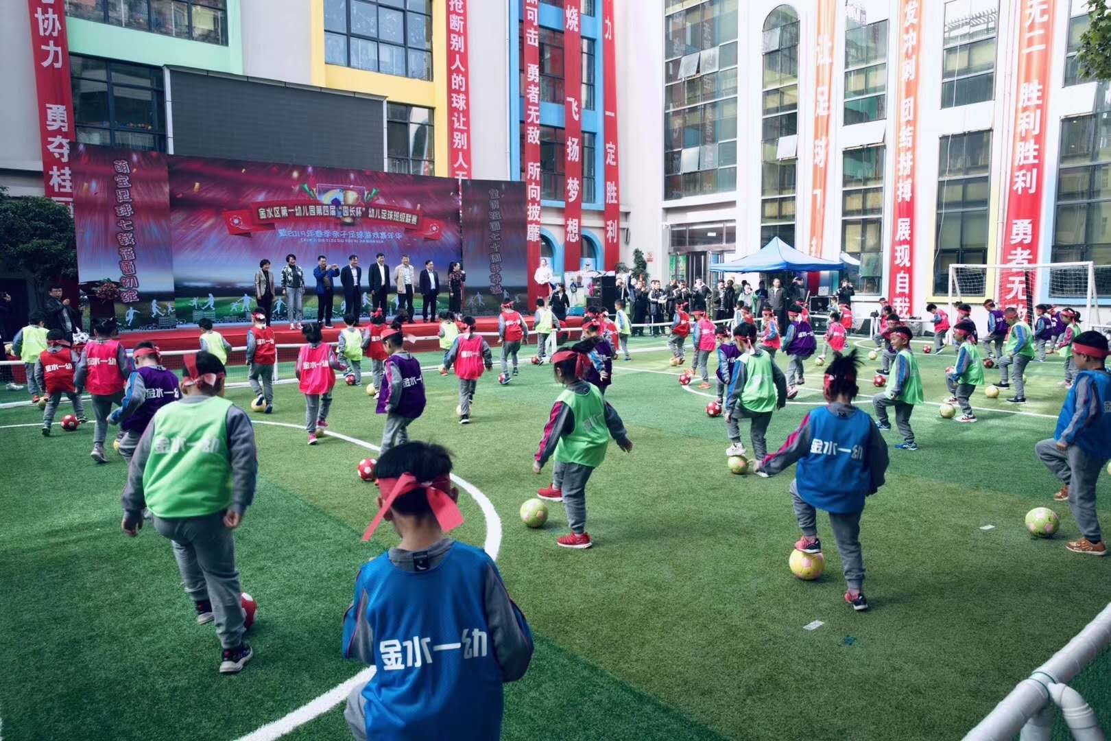 作为河南省校园足球示范幼儿园、郑州市幼儿足球试点园,金水区第一幼儿园自2016年起,每年都会举行足球班级联赛,在活动中,幼儿园一方面注重幼儿参与足球游戏的过程,以游戏为载体,以足球为抓手,全面落实“趣味足球,快乐成长”的幼儿足球教育理念,努力探索金水一幼“萌宝”足球特色课程体系;另一方面积极邀请家长参与,帮助家长树立正确足球教育观念,促使足球活动不断在家庭和社会中生根、开花,推进娃娃足球教育活动的推广、普及。
