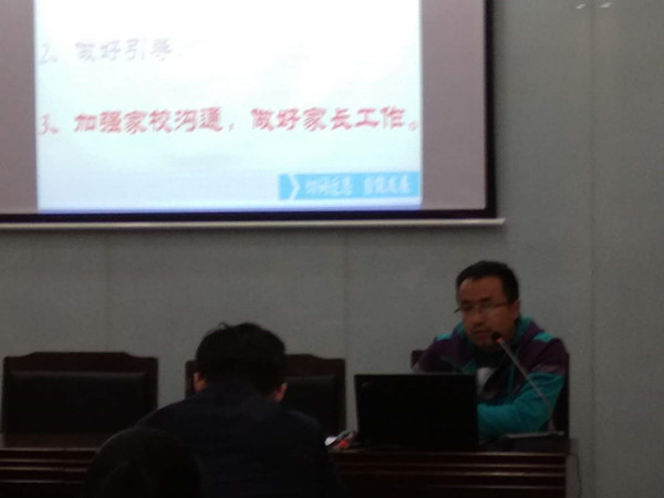 会议由年级长王建锋老师主持,他首先结合数据对各班级、各学科在本次考试中的学业表现进行了细致地分析、比较和点评。