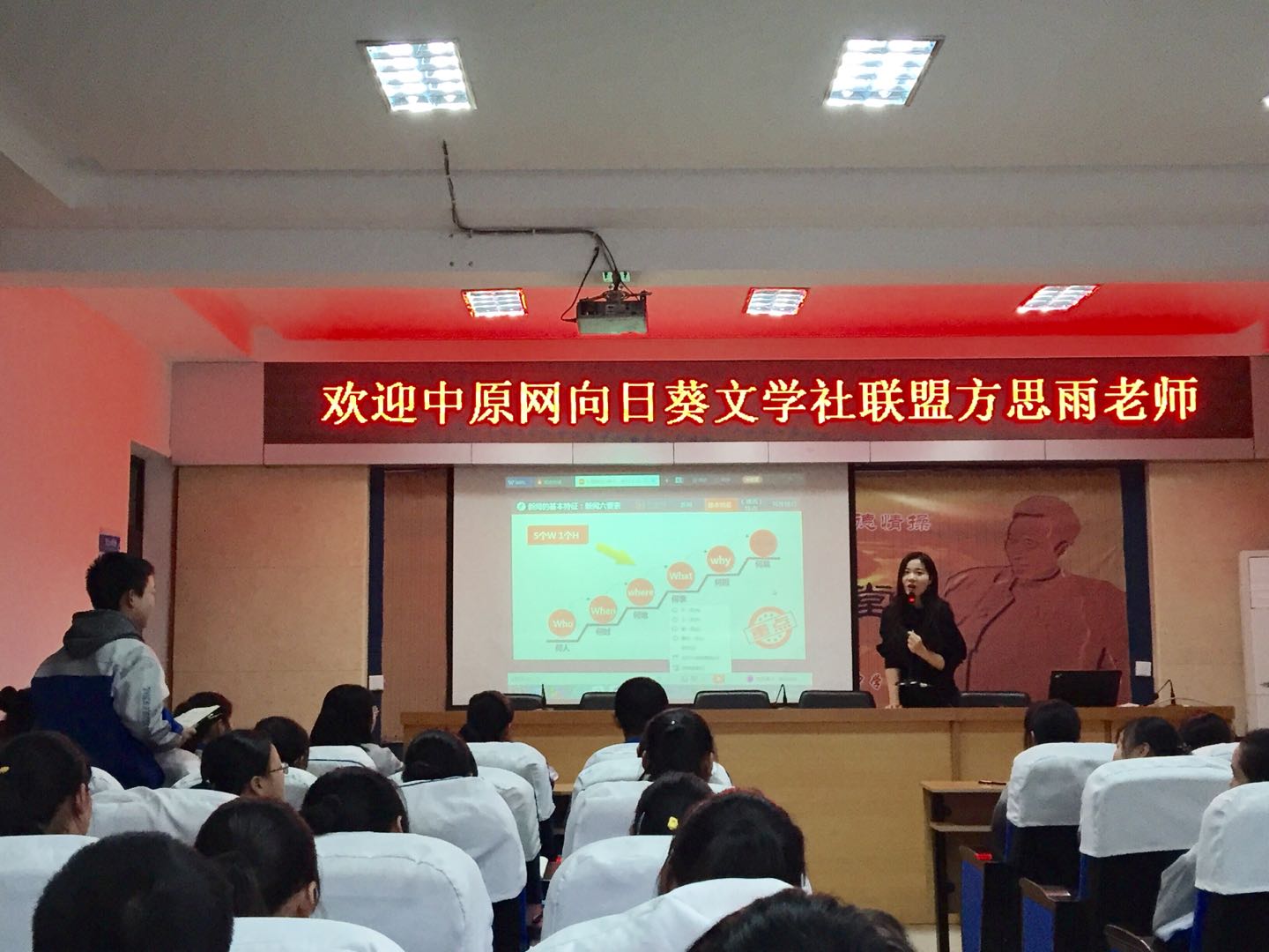为进一步提高学生写作能力,4月26日下午,郑州60中学邀请中原网记者方思雨老师到校开展新闻写作技巧培训,学校作家小传、诗朗诵、戏剧社团学生参加了培训。