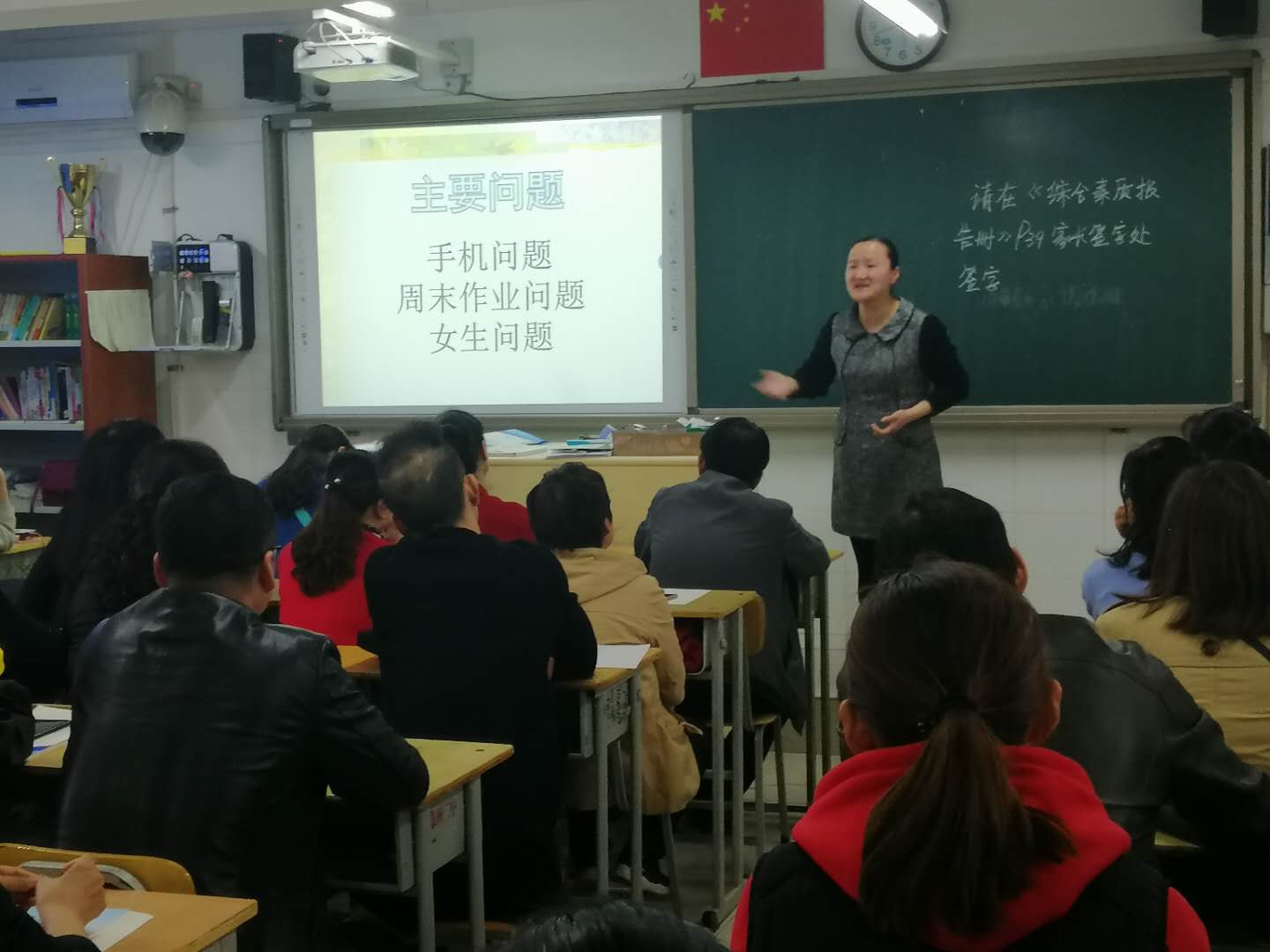 家长会上,有学生干部主持召开的,有教师团队总结鼓劲儿的,有家长分享育儿经验的,还有现场研讨解决问题的,各个班级的着眼点都有所差别。有的班级分析现阶段取得的进步和成绩,目前存在的问题;有的班级家长委员会唱主角,他们就下阶段如何更好地开展工作,如何更好地进行家校配合进行讨论;有的班级主要针对下阶段要采取的计划和措施展开交流;有的班级重点强调各种安全问题。整个家长会下来,七、八年级各有特色,方式不同但效果一致。