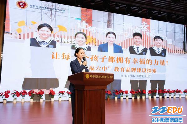 郑州经开区第六中学党支部书记、校长岳丽鸽以《让每一个孩子都拥有幸福的力量!》为题,从学校品牌建设的哲学溯源和体系构架、培养幸福学生的德育探索和典型案例、擦亮幸福品牌的育人成效和未来展望三个维度,系统阐释了课程育人、文化育人、活动育人、实践育人、管理育人、协同育人六大育人体系如何在幸福六中落地生根,全面展现了学校德育工作的理念与路径。