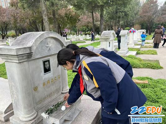 仪式结束后,师生们怀着崇敬的心情,有序瞻仰烈士墓,并敬献白菊向长眠于此的英烈们致以最崇高的敬意。随后,师生们步入中原英烈纪念馆。