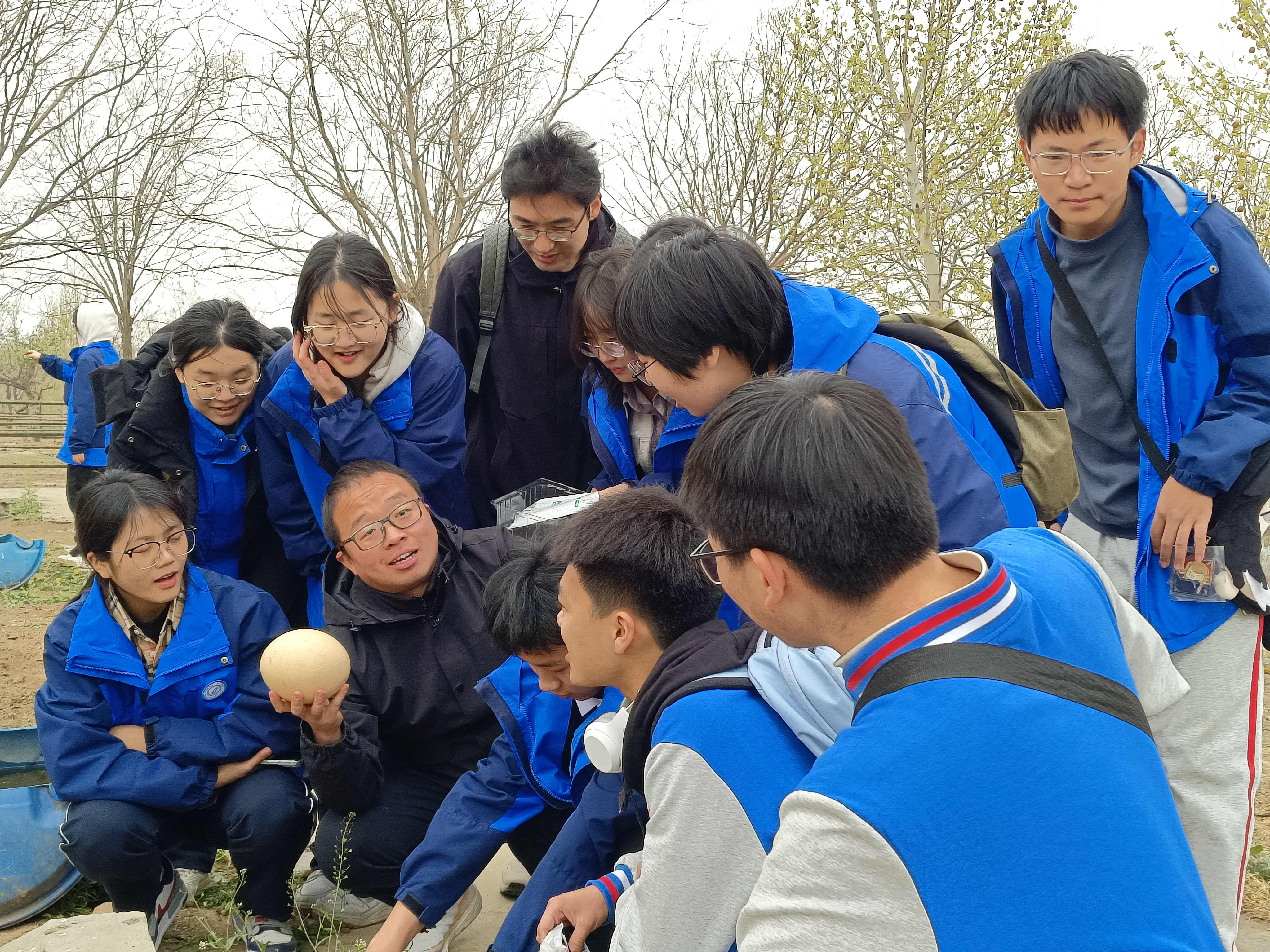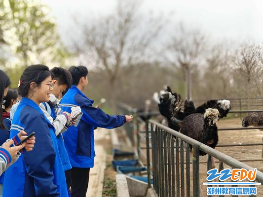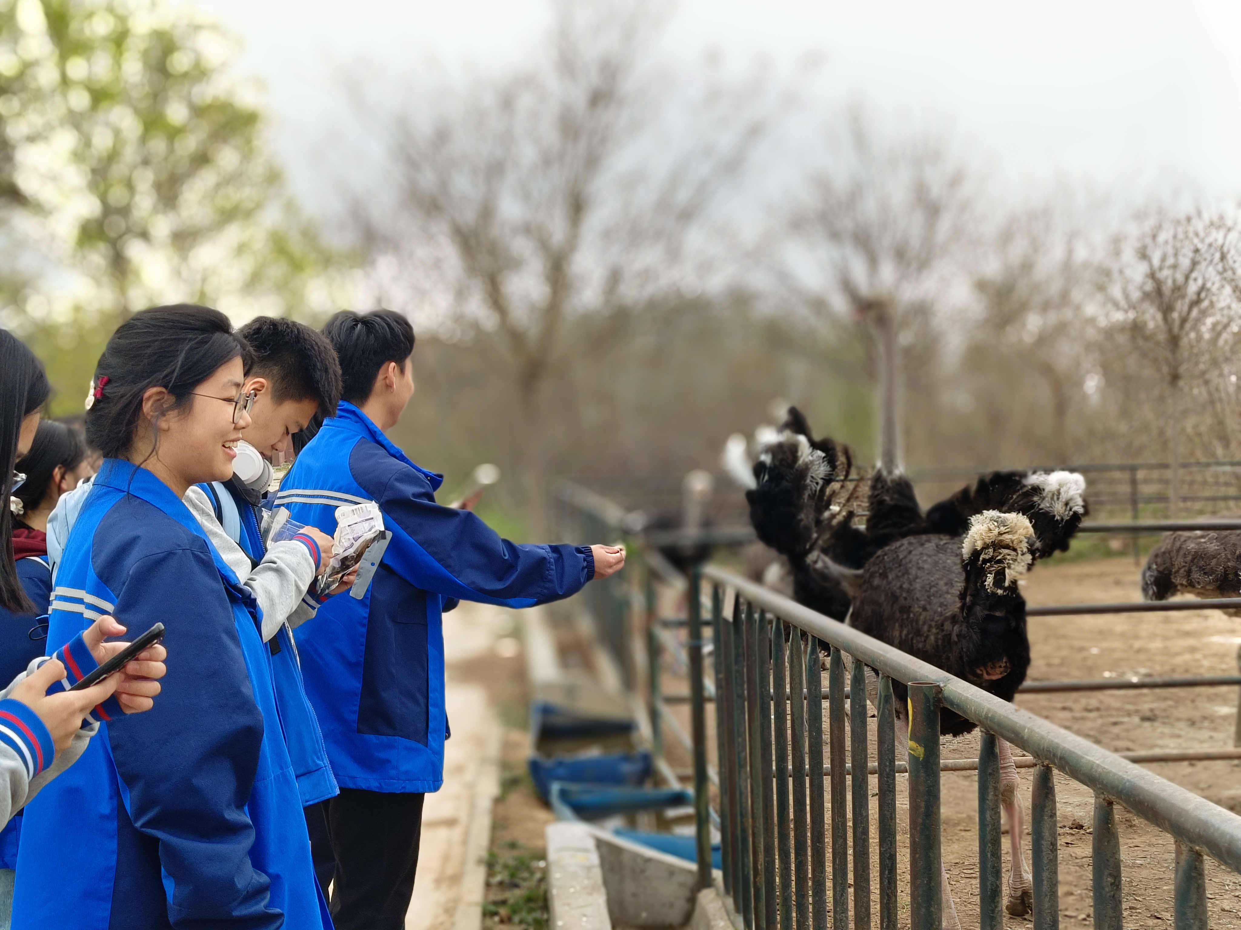 离开新沟花海,师生们移步鸵鸟谷。在这里,学生们不仅见到了高大的鸵鸟,还亲手投喂了这些可爱的动物。在投喂过程中,郑州市第一〇一中学生物组王国威老师向学生们介绍了鸵鸟的生活习性、食性以及鸵鸟蛋的特点,让学生对鸵鸟有了更直观的认识。