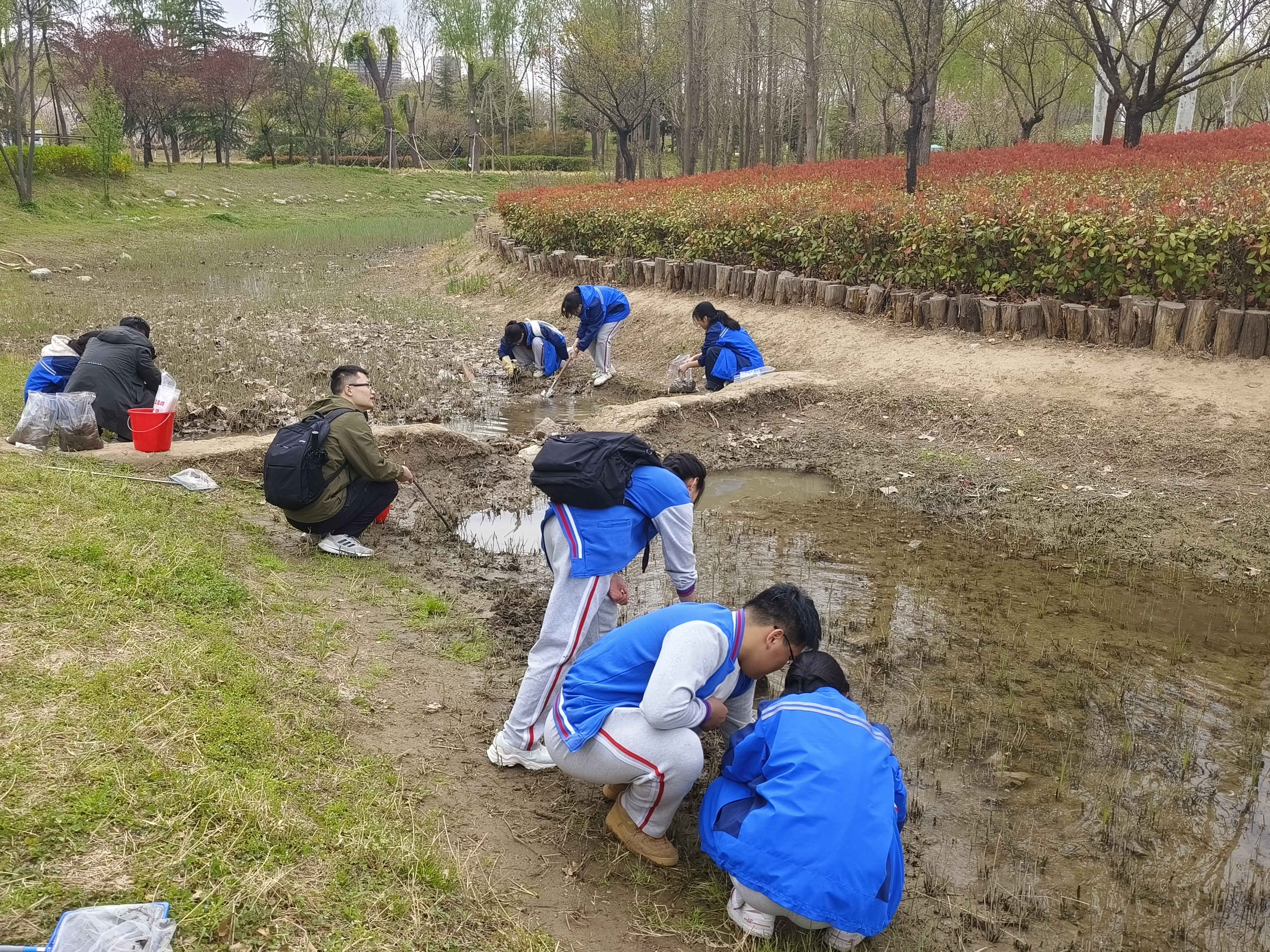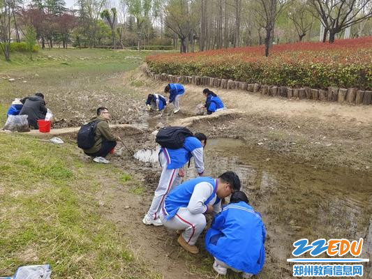 郑州市第一〇一中学生物组的老师们带着学生实地采样