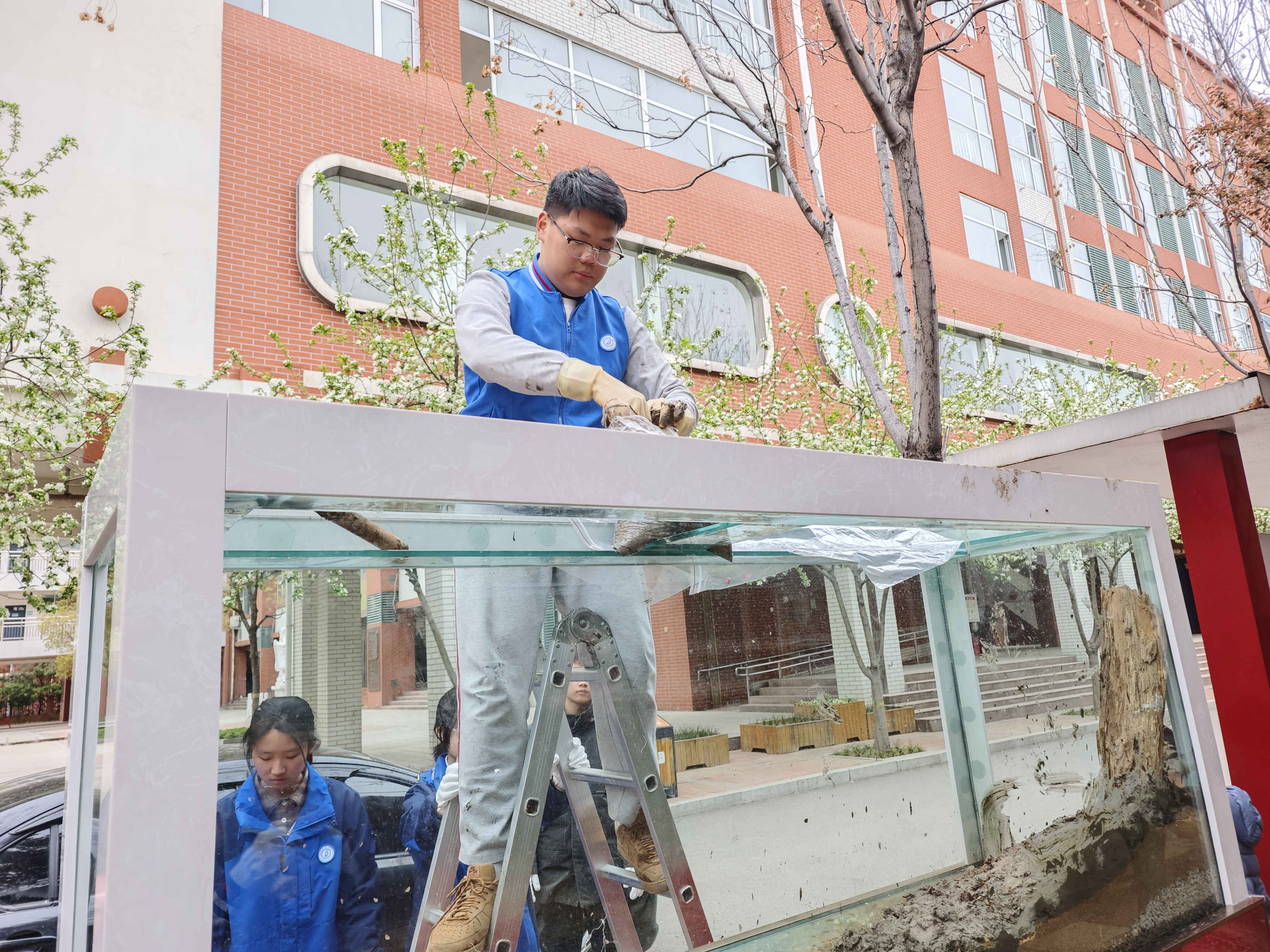 3月29日,郑州市第一〇一中学校园内悄然立起一座"微型生态方舟"—"扶轮号"生态缸。这个由师生共同打造的生态系统,不仅为校园增添了一抹灵动的生意,更开创了学校"实践育人"的新范式,展现了学校新时代“实践育人,学科融合”的教育理念。