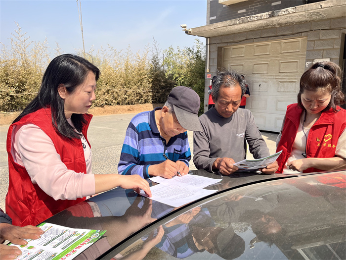 现场,志愿者结合郑州通报的三起火灾典型案例和森林防火宣传彩页耐心向村民宣传,森林防火,人人有责,清明临近,大家上山祭奠先人的心情可以理解,但是近期天干物燥,频发的森林火灾也让大家从中汲取教训,引以为戒。希望老乡们能够从大局出发,开展文明祭扫,防止森林火灾,共同守护我们的家园。最后,志愿者协助村干部和群众签订森林安全防火承诺书,为做好森林防火工作贡献自己的一份力量。
