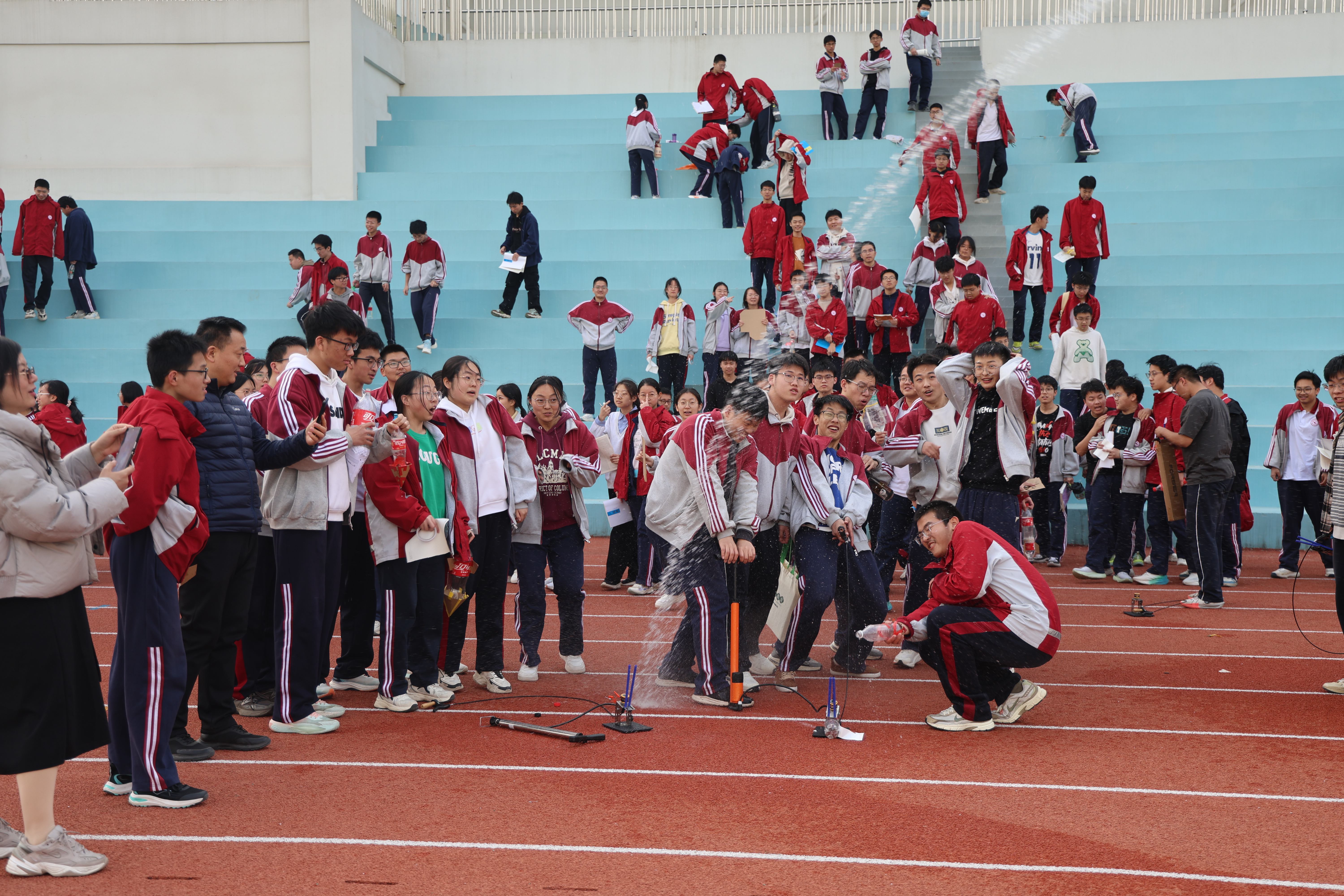 发射环节将活动推向高潮。老师们首先展示了一级火箭和二级火箭的发射过程。随着一声“发射”指令,水火箭如离弦之箭般冲向天空,拖着白色的尾迹,在蓝天中划出一道美丽的弧线,最大飞行高度可达上百米。学生们兴奋地欢呼、鼓掌,现场气氛热烈非凡。演示结束后,各班同学以班级为单位,在老师的指导下开始紧张而有序的水火箭制作与发射实验。同学们有的负责组装火箭,有的负责调试发射装置,有的负责测量数据。在制作过程中,大家充分发挥自己的聪明才智,不断优化设计方案,力求让自己的水火箭飞得更高、更远。