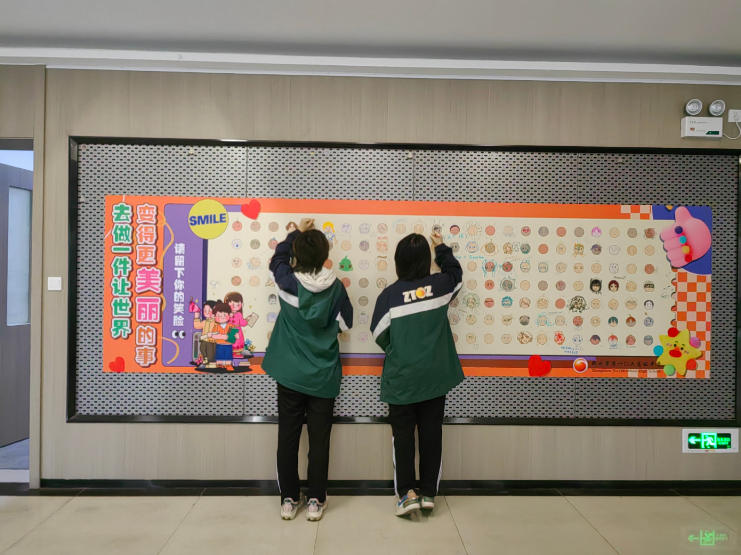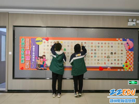 同学们在笑脸墙上挥洒创意