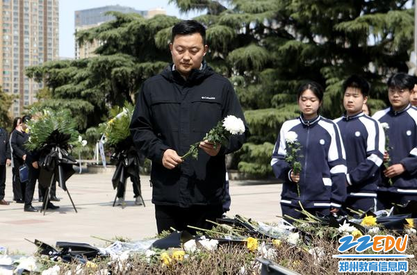 郑州市经济贸易学校师生向革命先烈纪念碑行鞠躬礼