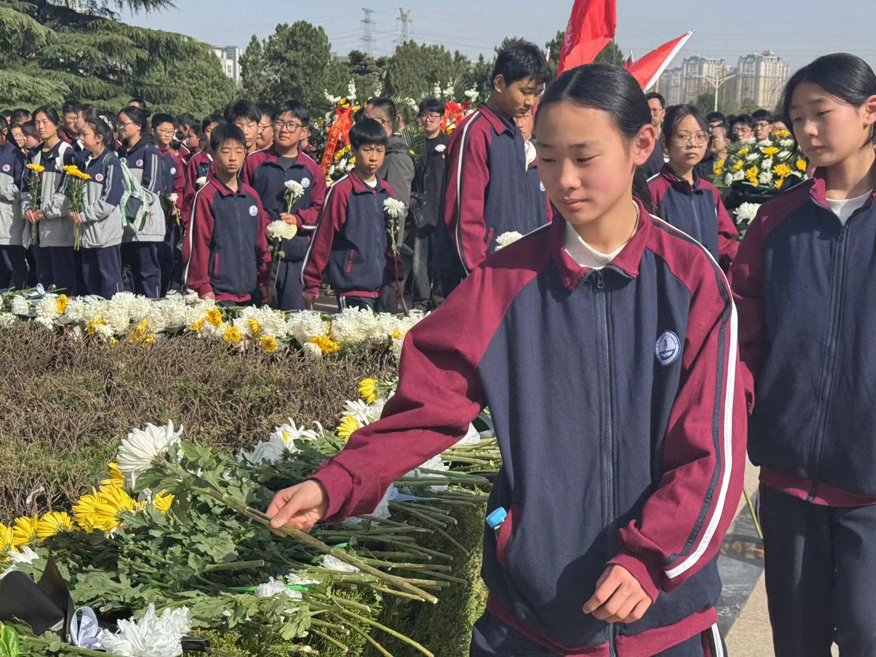 清明节前夕,郑州经开区九龙中学以“弘扬传统文化 厚植家国情怀”为主题,开展系列活动。全校师生通过校内主题教育、线上云祭扫、郑州烈士陵园实地研学等形式,将思政课堂搬进红色地标,让家国情怀浸润学生心灵。