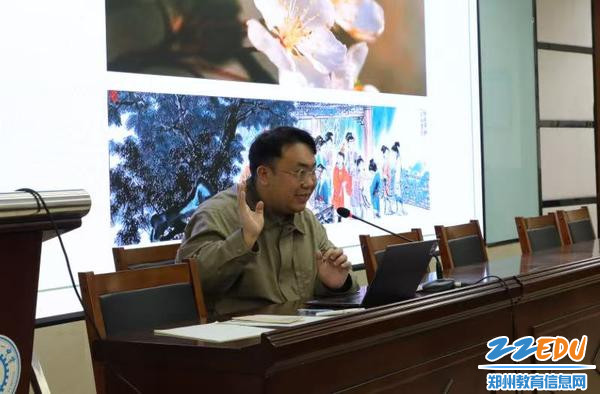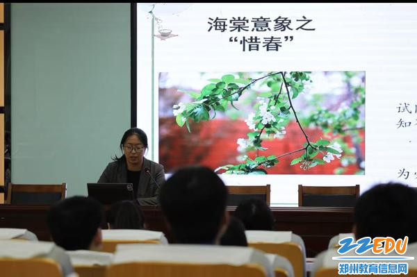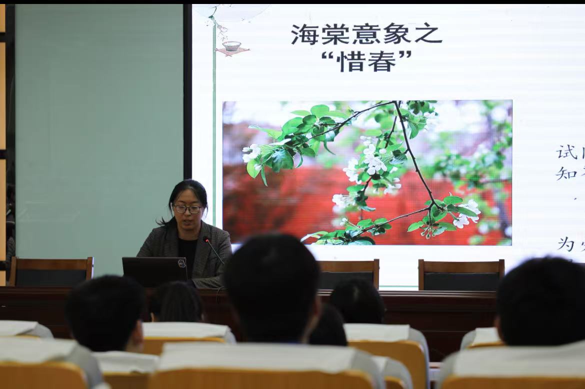语文学科中心教师王胜楠则以《海棠意象的千年流转》为切入点,通过大量的诗歌例子为同学们讲述了海棠花意象的不同。张逸飞老师带领同学们细读《红楼梦》文本,探讨了中国古典诗歌“诗言志”的艺术特点。